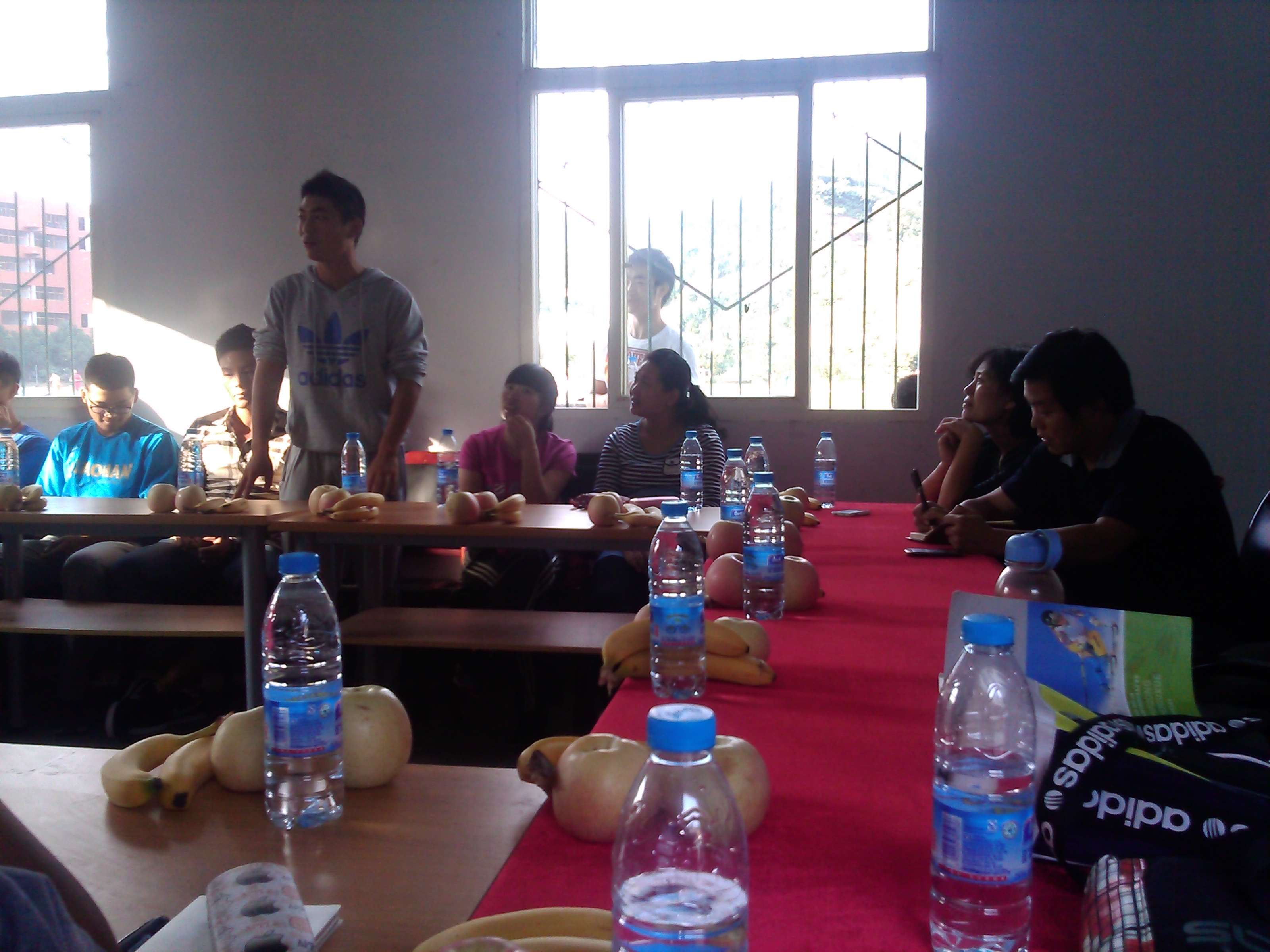 座谈会分为三个阶段进行:新生自我介绍、各位领导讲话、自由发言讨论。我院领导老师对本次座谈会十分重视,在会上对每位同学的学习、生活表示亲切的问候。会上气氛十分活跃,同学们也能够敞开心扉与各位领导老师沟通。在座谈会进行中,董主任详细的讲解了同学们在进入大学后应该怎样学习,如何明确自己的目标与方向,树立正确的人生观、世界观。佘书记鼓励省外同学们要多与本地同学共同学习,共同进步,入乡随俗,尽快适应大学生活,发扬我们体育学生能吃苦耐劳的精神,将这里当做第二故乡,让自己的梦想从这里起航。