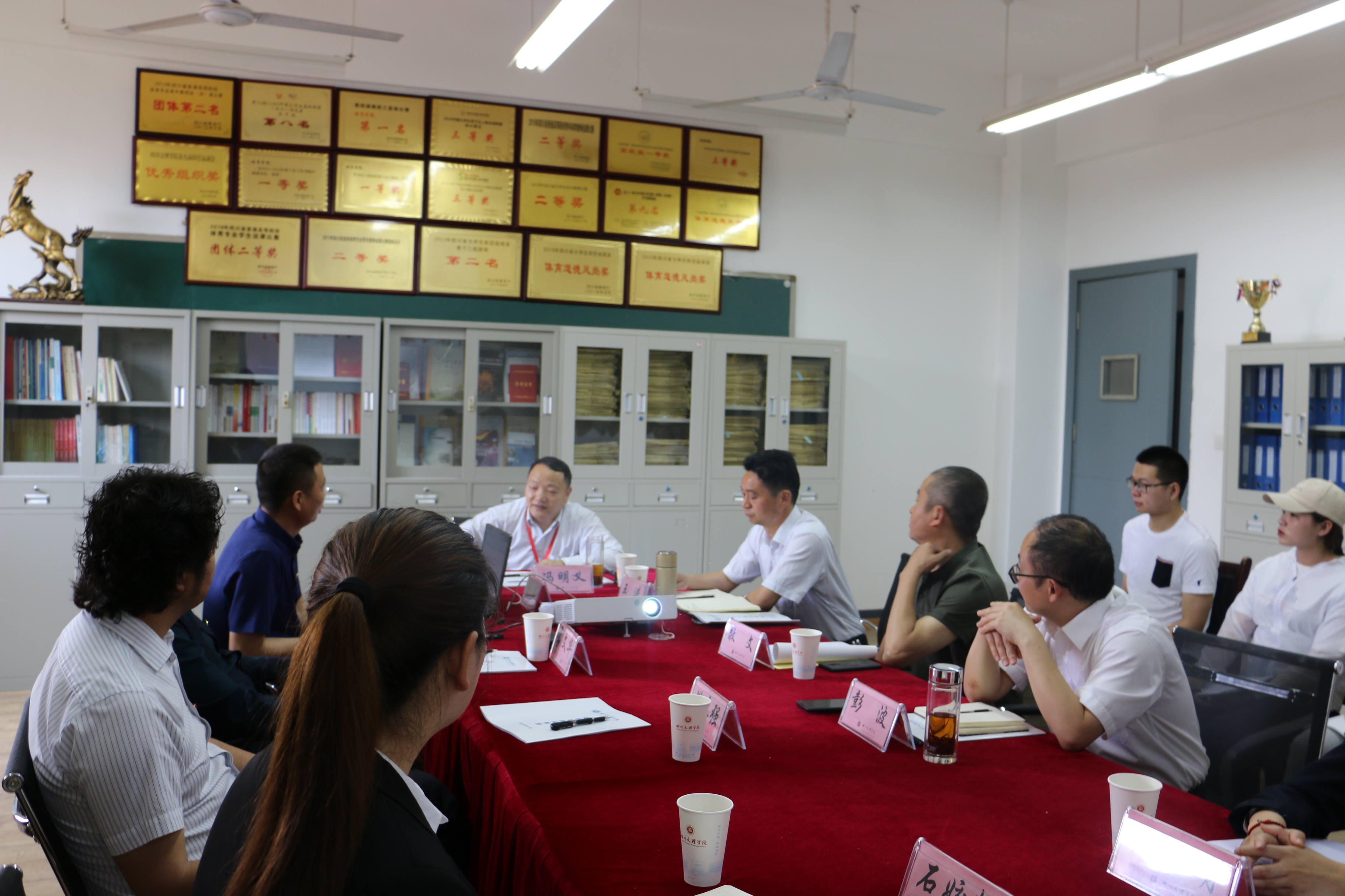 佘院长的汇报引起了冯教授的兴趣和关注。听取汇报后,冯教授就一专多能体育人才的内涵、体质健康测试的情况、学生考研状况、教育教学改革等等问题与与会的老师进行了交流。交流会持续了一个多小时,大家踊跃发言,会场气氛融洽。