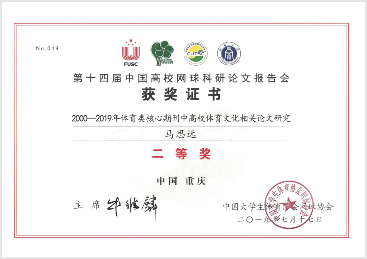 由中国大学生体育协会网球分会主办、西南大学承办的第十四届中国高校网球科研论文报告会于2
