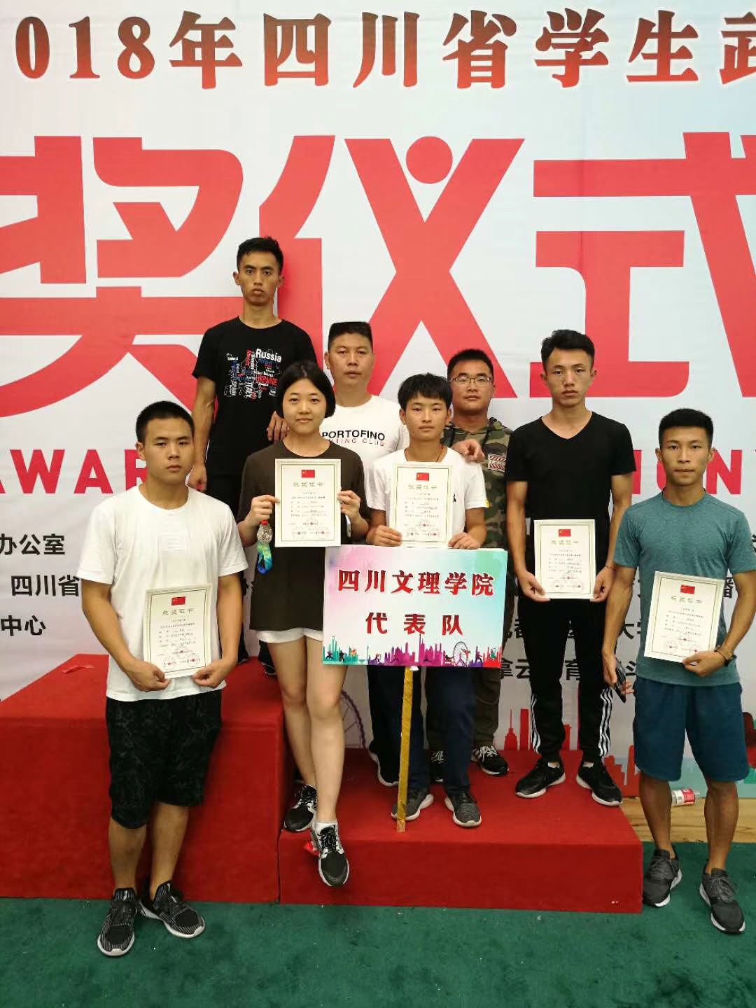 在6月9日的武术套路比赛中,史洁玉同学获得大学生乙组56式太极拳金牌、张明新同学获得大学生乙组自选枪术银牌;兰天雄同学获得大学生乙组自选南拳银牌;石森同学获得大学生乙组自选棍术铜牌,自选长拳第四名;唐露同学获得大学生乙组24式太极拳铜牌;白云同学获得大学生乙组24式太极拳第四名;陈世俊同学获得大学生乙组24式太极拳第四名;贺建军同学获得大学生乙组24式太极拳第五名;荣获集体项目一等奖及团体二等奖。