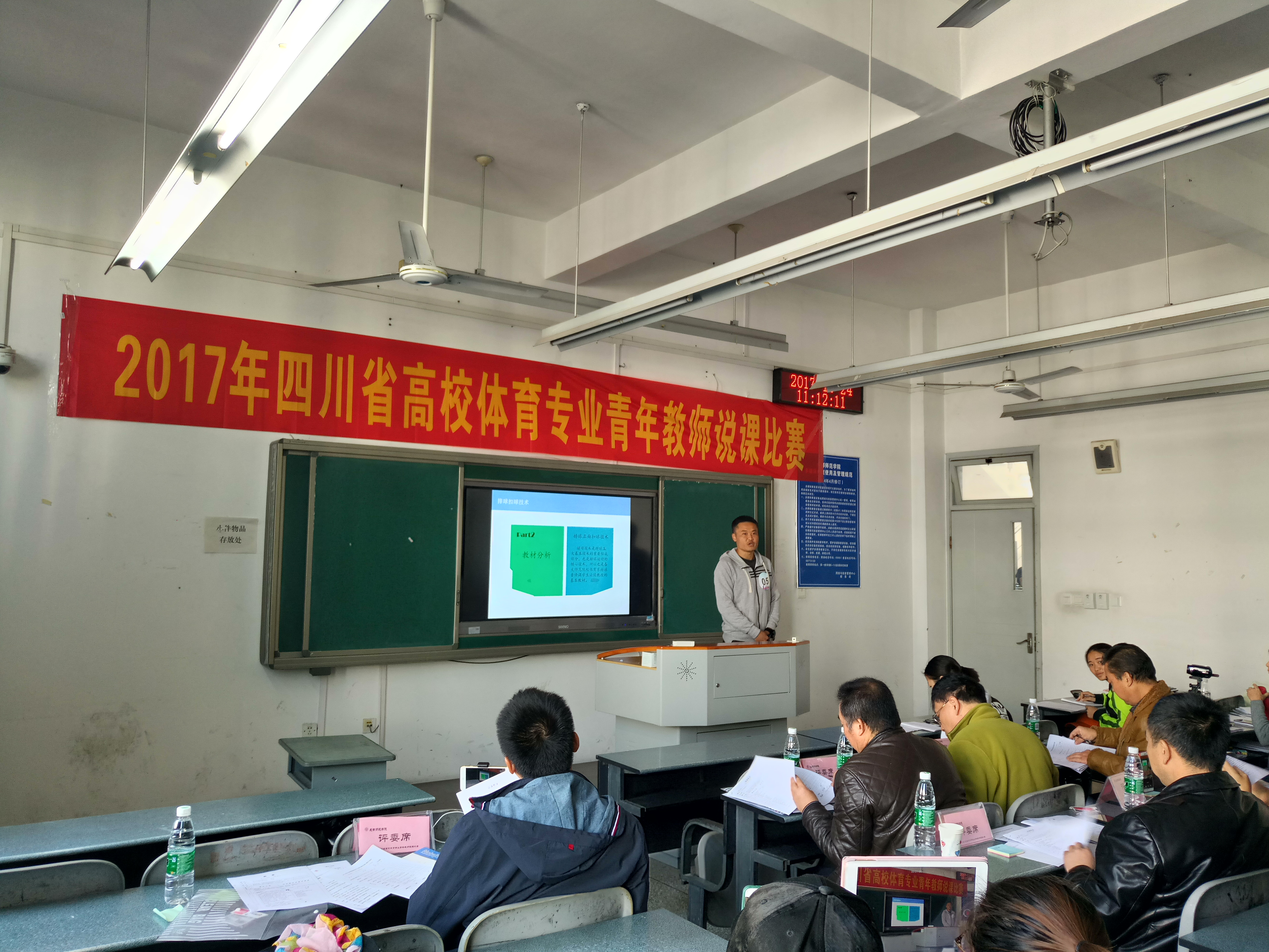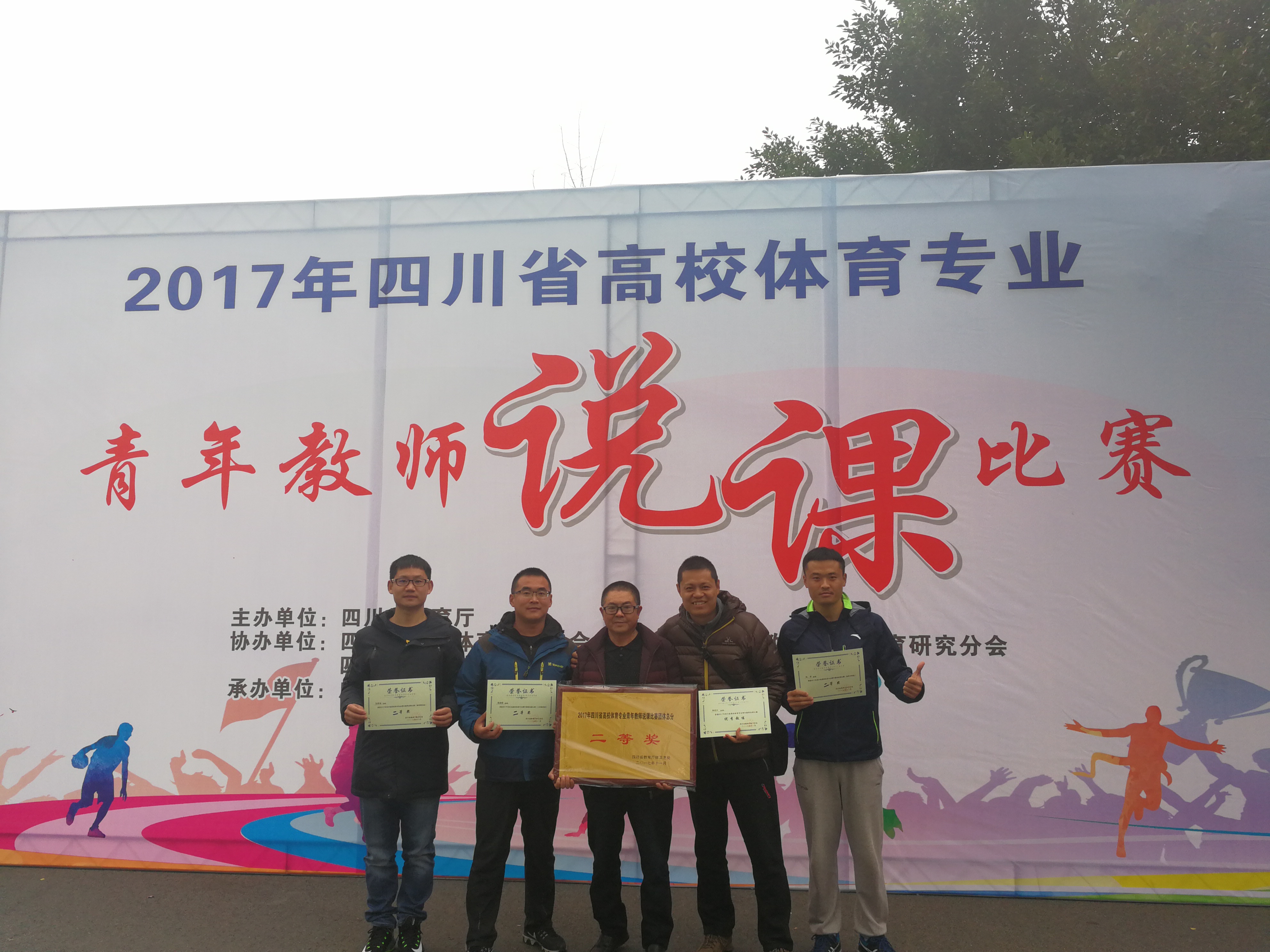 2017年11月23日至25日,2017年四川省高校体育专业青年教师说课比赛在成都师范学院举行。我院三名青年教师刘宇、张岩松、马思远分别获得个人二等奖,团体获二等奖,成绩较以往有了重大突破。