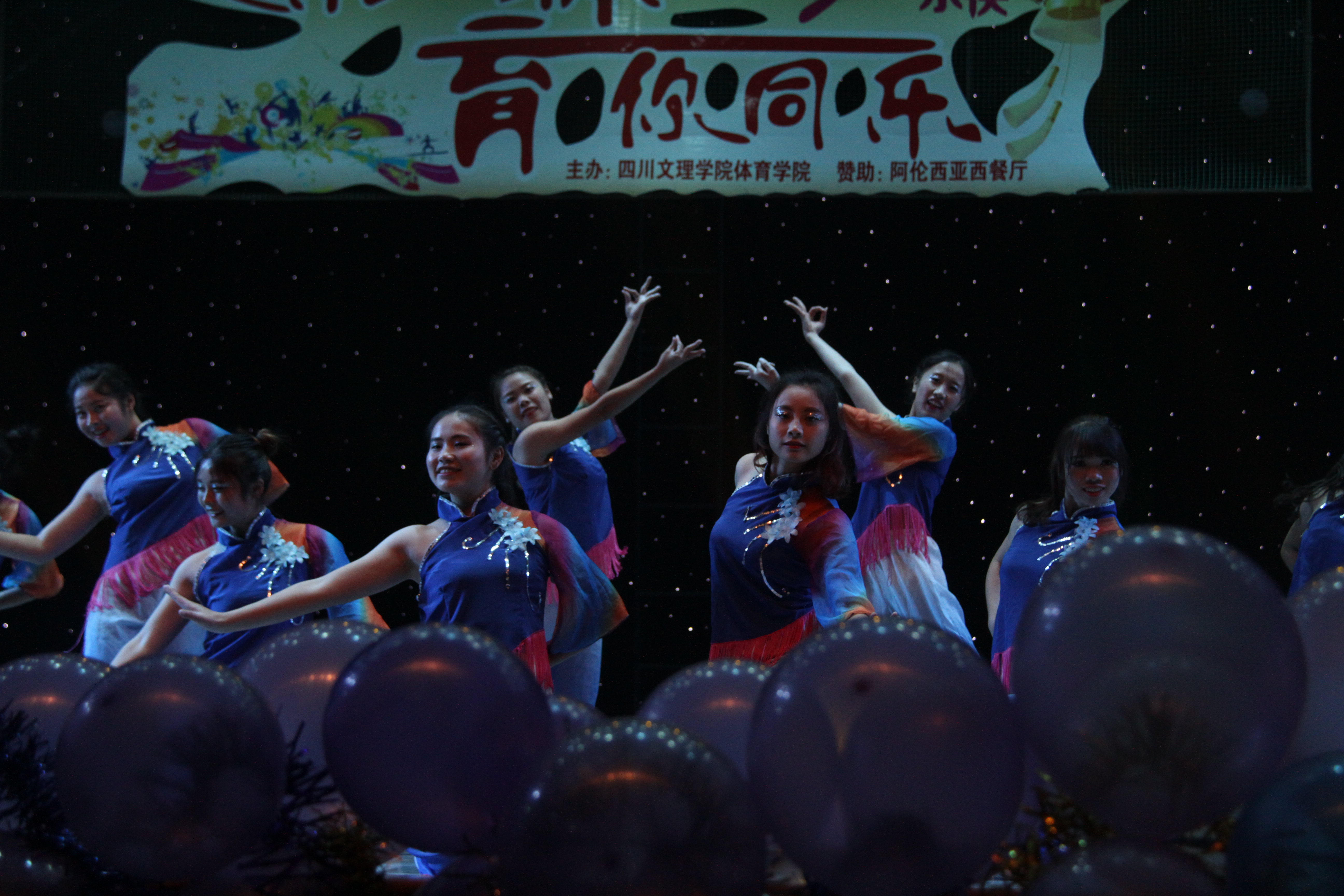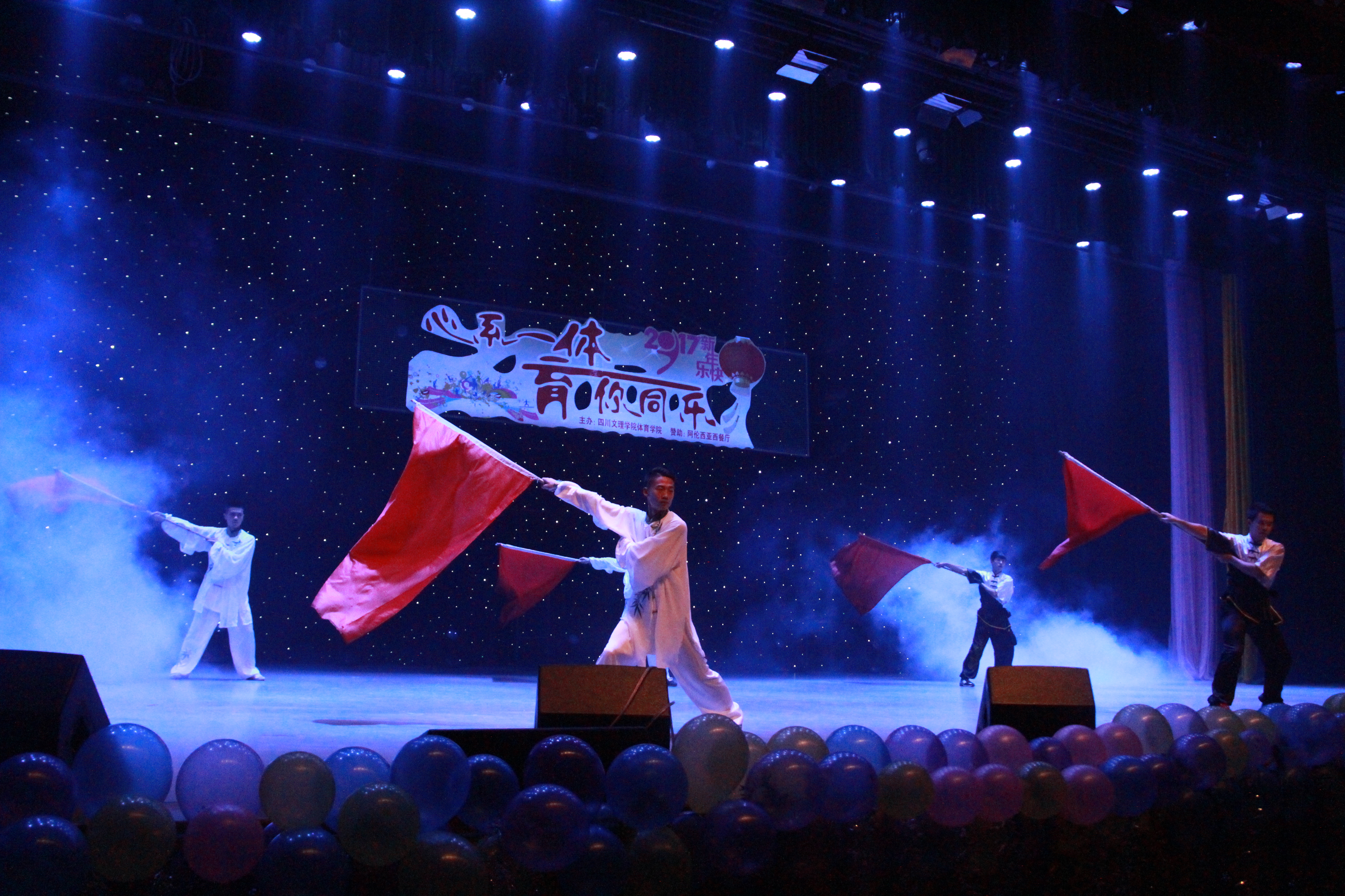 晚会围绕“心系一体·育你同乐”为主题,有舞蹈、搏击操、啦啦操、T台秀、小品、相声、歌曲串烧、武术、跆拳道等节目形式,节目内容充分展现了我院学生朝气蓬勃,积极向上的精神面貌,也展现出当代大学生多姿多彩的课余生活,积极阳光的生活态度。