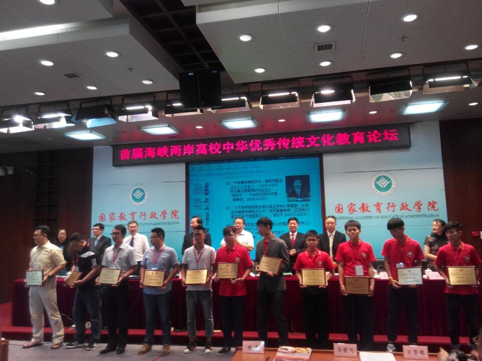 2015年7月1日至3日,由中国高等教育学会和两岸文教经贸交流协会联合主办的“首届海峡两岸高校中华优秀传统文化教育论坛”在北京国家教育行政学院隆重举行。我院武术协会荣获海峡两岸高校“儒风雅社”优秀组织奖。