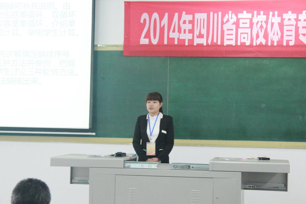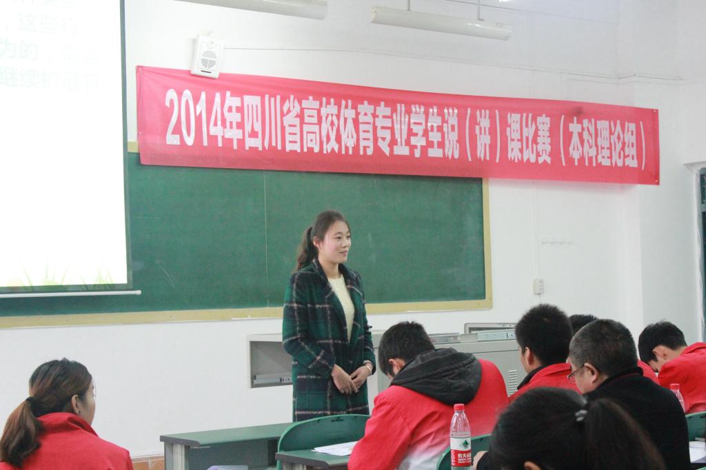 据了解,2014年四川省普通高等院校体育专业学生说(讲)课比赛由四川省教育厅主办,全省共15个体育院校,55名本(专)科同学参赛。