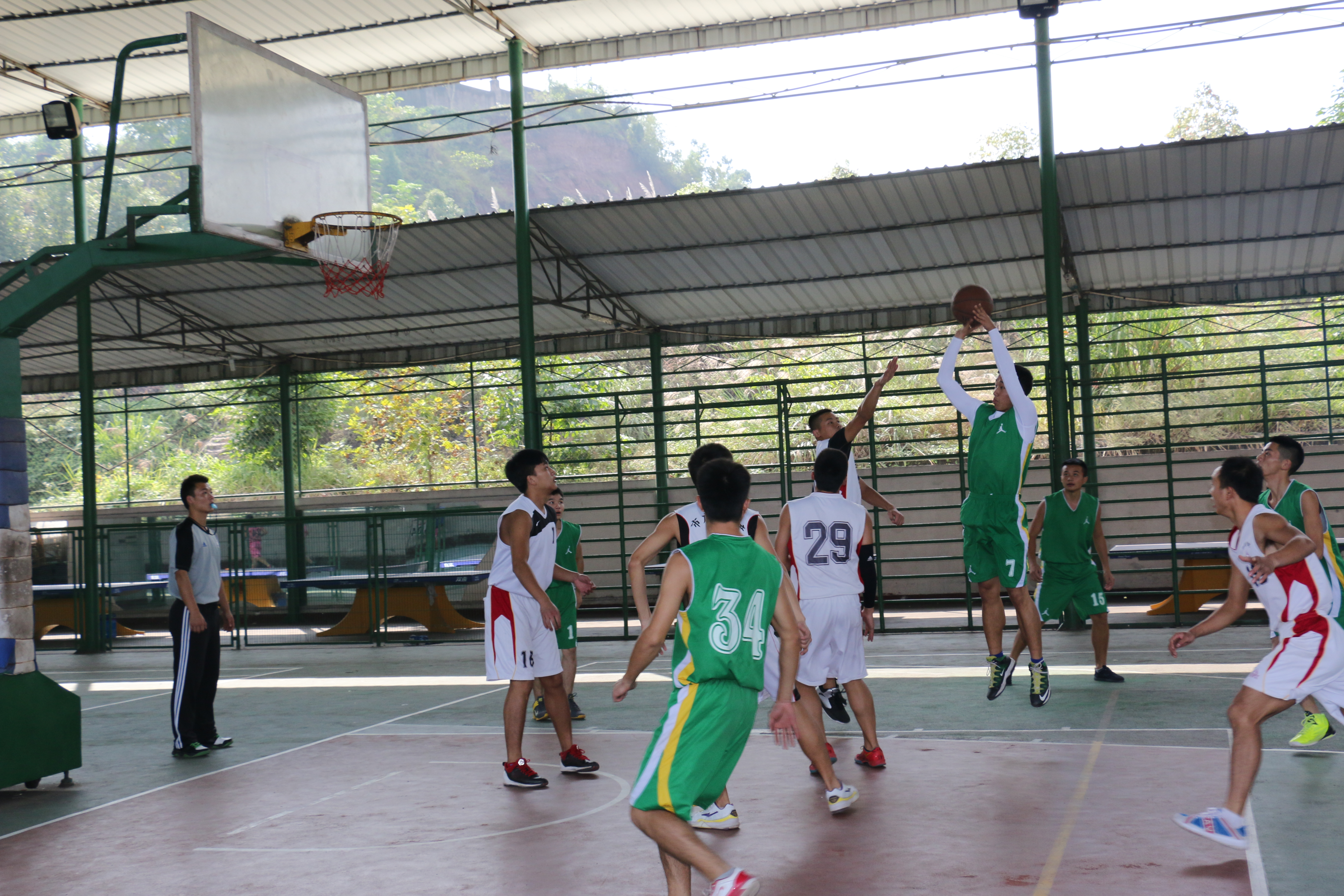 室外篮球场和室内篮球棚同时