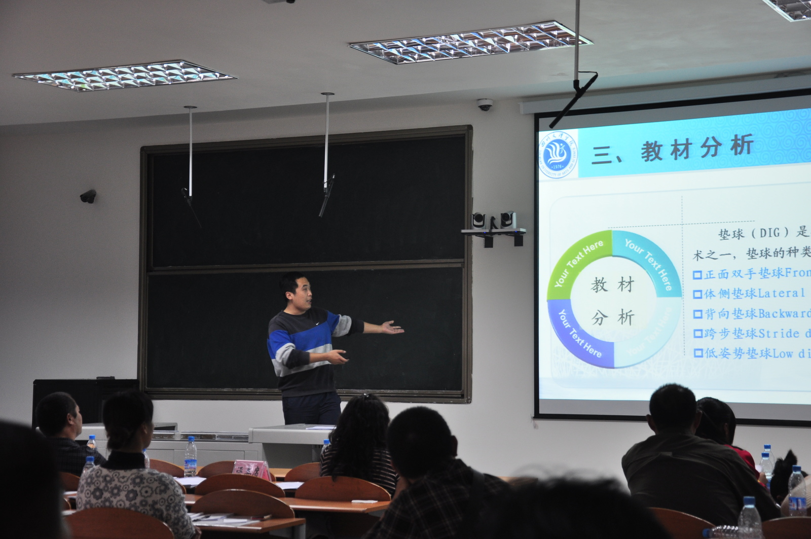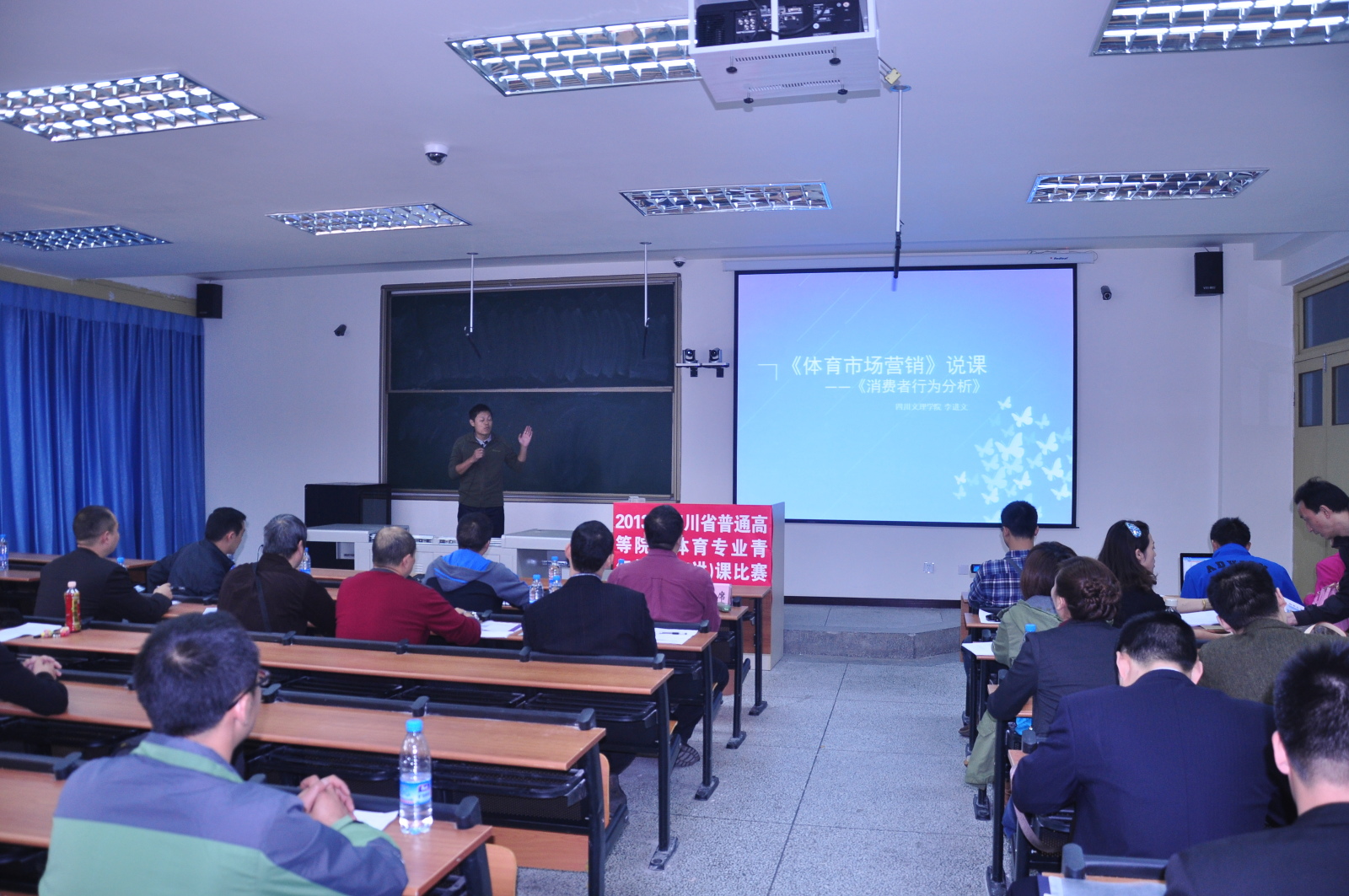 本次全省体育教师说课比赛旨在进一步加强高校青年教师队伍建设,促进校际体育工作的交流,提高体育专业教育教学质量。四川省设置体育专业的24所普通高等学校80余名教师参赛。参赛教师分术科、学科、公体三组比赛,采用20分钟现场说课评比的比赛方式进行。金年会jinnianhuicom认真组织,通过先期进行院内比赛,精心选拔了樊永强、孙亮亮和李进文三位教师参赛。我院教师说课材料准备充分,课堂教学目的明确,教学思路清晰,教学过程设计合理,语言表达准确精炼,教学方法独特新颖。我院选手们流畅的讲解,优美的板书,端庄大方、挥洒自如的仪态,展现了过强的教学技能和教师风采,赢得了参赛同行们和专家评委的连连称赞。