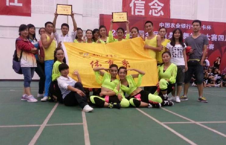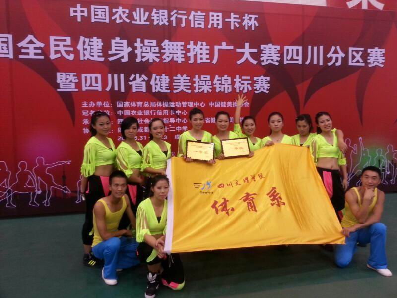 年全国全民健身操舞大赛四川分站·暨四川省健美操锦标赛在四川省成都市十二中学举行。我院代表队分别参加了大众健美操四级和爵士舞的比赛。比赛在参赛队员的积极配合下取得了圆满的成功。最终,我院代表队以优异表现了荣获了大众锻炼标准等级动作一等奖,街舞规定动作一等奖及获得由中国健美操协会组委会颁发的“最佳完成奖”奖项。