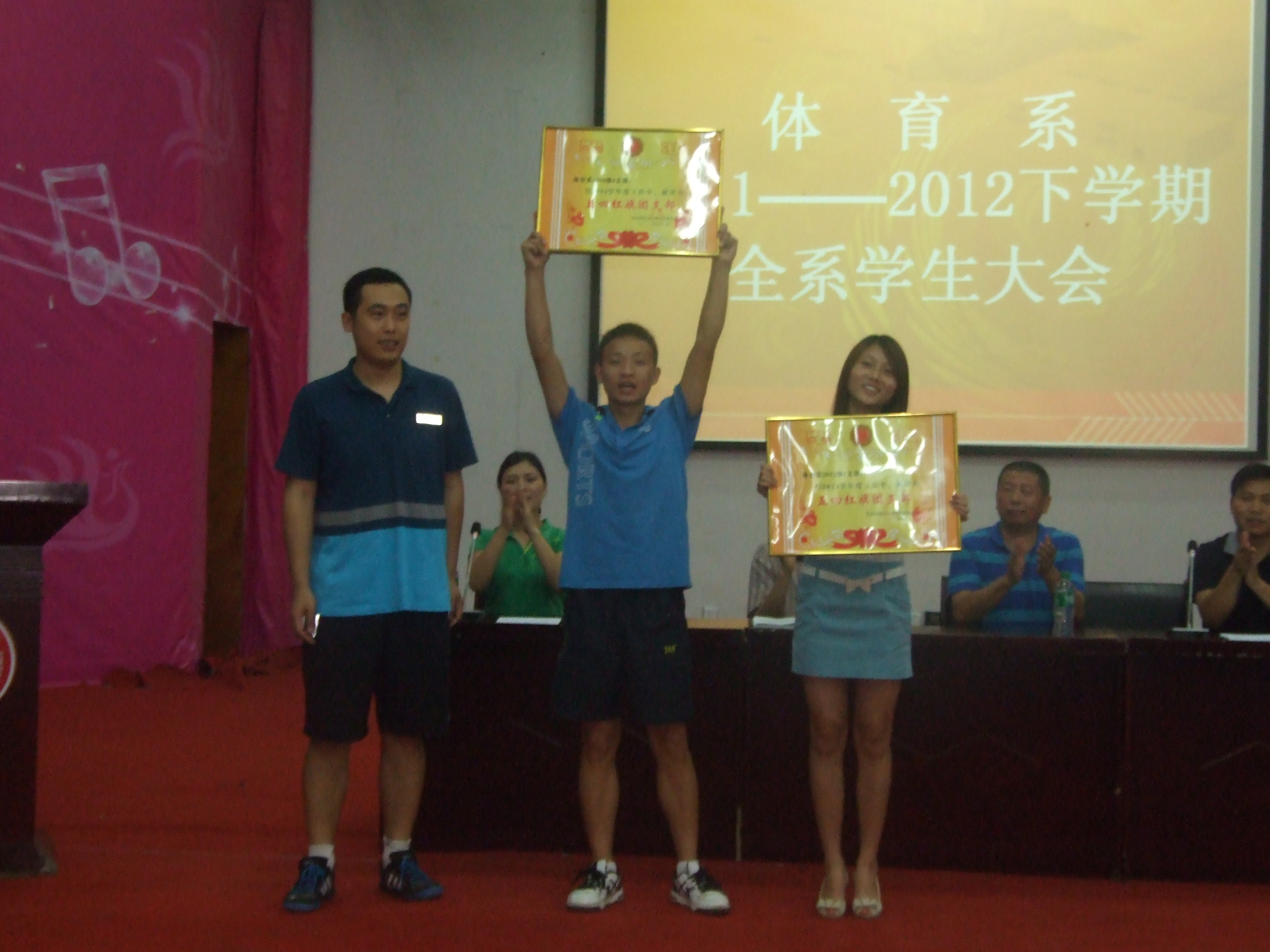 2012年6月10日晚上7点,体育系在莲湖校区126教室顺利召开2011-2012下学期学生教育总结大会。本次大会的召开主要是对本学期的学风建设、学生常规管理、安全教育、考风考纪做以总结。参加会议的有体育系主任董立教授、副主任陈碧述教授、党总支副书记张皓老师、那明明辅导员及班主任老师代表,全系近600名学生参加了本次总结大会。