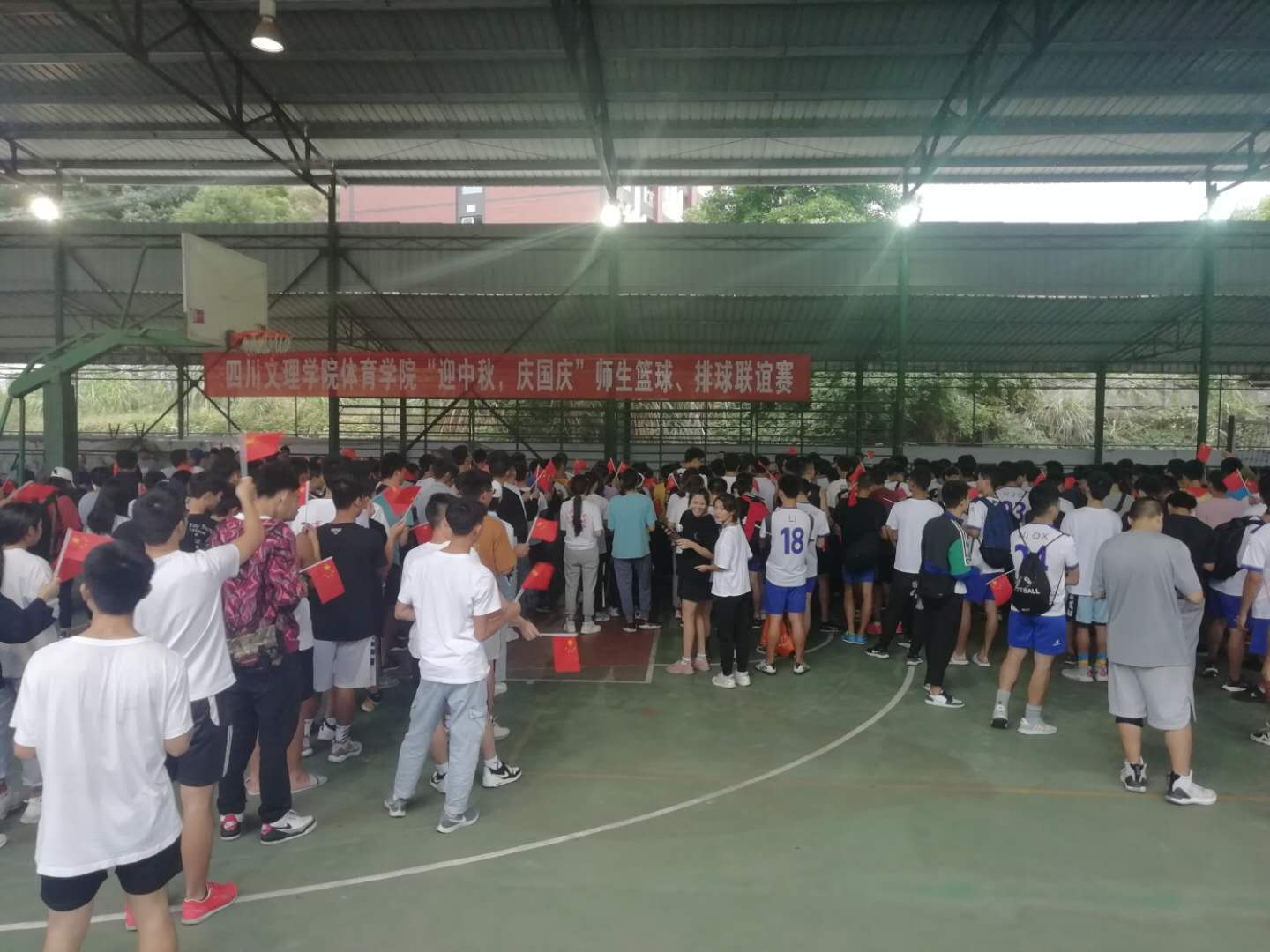 20209271620分,金年会jinnianhuicom在篮球棚举行篮球、排球师生联谊赛,学院全体教师、部分学生代表参加了比赛。1625分,全体师生高唱《中华人民共和国国歌》,随后大家合唱了《歌唱祖国》、《今天是你的生日我的中国》,表达了全院师生对祖国生日的深深祝福。接着比赛正式开始,老师和同学们热情澎湃,斗志昂扬,切磋球技,球场边助威声、欢呼声不断。伴随着夕阳西下,师生联谊赛圆满结束。