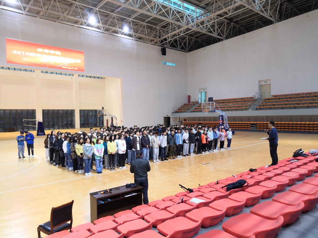 佘涛院长首先从教师资格证考试的现实问题和面临的挑战入手,分析如何通过自己的努力才能考取教师资格证,为同学们指明努力方向。孙亮亮副院长通报2018级学生最近一段时期的课堂表现情况以及2017级毕业论文完成情况,告诫学生重视平时的学习表现,把握住最后一年的机会,给自己的大学生活画上圆满的句号;教学科研办主任李进文通过对课程考试、学位英语、学分构成等方面的分析,提醒同学们对标人才培养方案,对比优秀学生的课程和学分完成情况,核查自己的学分取得情况。最后,王兆忠书记通过对体育人及体育精神的解读,勉励同学们珍惜时光,本着对自己负责、对未来负责的态度,切勿把自己最美的青春年华用在错误的地方,认真安排好每一天的生活和学习。