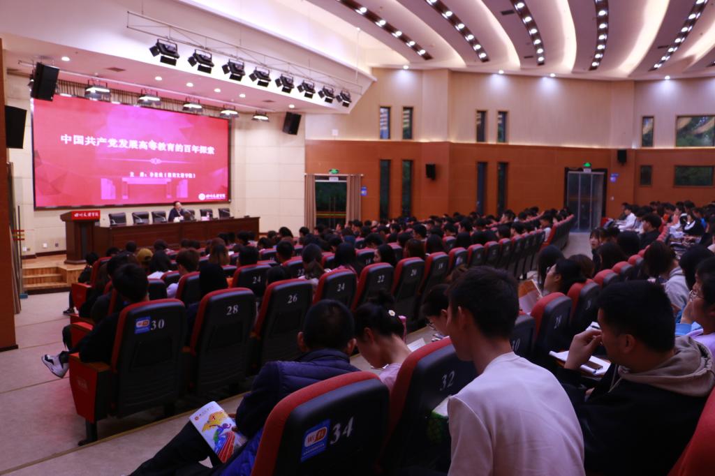 4月19日晚,学校党委常委、副校长李壮成同志到学院为全体师生做党史学习教育宣讲,此次讲座主题为“中国共产党发展高等教育的百年探索”。学院党总支书记王兆忠主持了宣讲会,学院全体教职工、2019级和2018级全体学生参加了宣讲会。