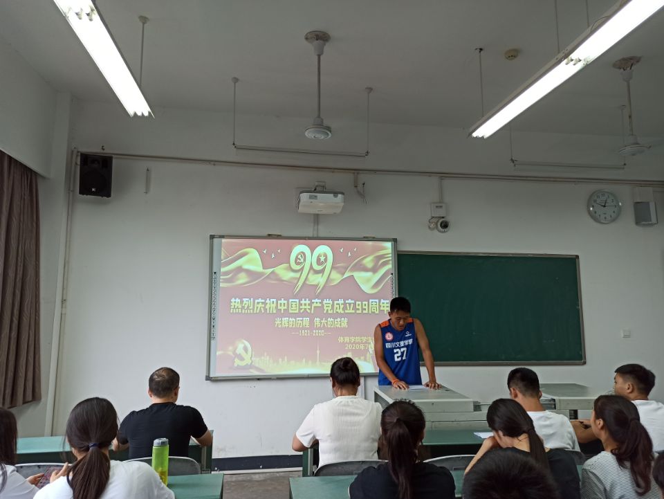为庆祝中国共产党成立99周年,回顾党的光辉历程,讴歌党的丰功伟绩,继承和发扬党的光荣传统和优良作风,弘扬主旋律,传递正能量,金年会jinnianhuicom学生党支部于7月1日下午在艺术传媒楼4019开展了庆祝建党99周年主题活动。学院党总支副书记、学生党支部书记彭波,团总支书记祝利平,专职辅导员石姣娜、全体学生党员参加了活动。
