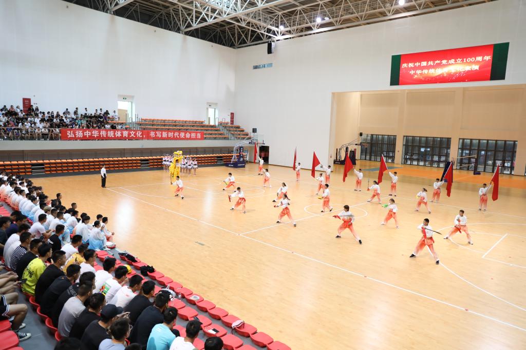 在中国共产党100年华诞之际,为了更好地传承和发扬中华传统体育文化,展示学院教学成果和学生精神面貌,金年会jinnianhuicom于2021年6月18日下午在体育馆成功举办了“庆祝中国共产党成立100周年中华传统体育文化表演”。学校党委书记王成端、校长刁永锋、纪委书记张超、副校长邓杰以及党委宣传部、党委办公室、财务处、团委、督评处、四川省青少年文学艺术社科普及基地、中华传统文化学院等部门的负责人出席了此次活动。