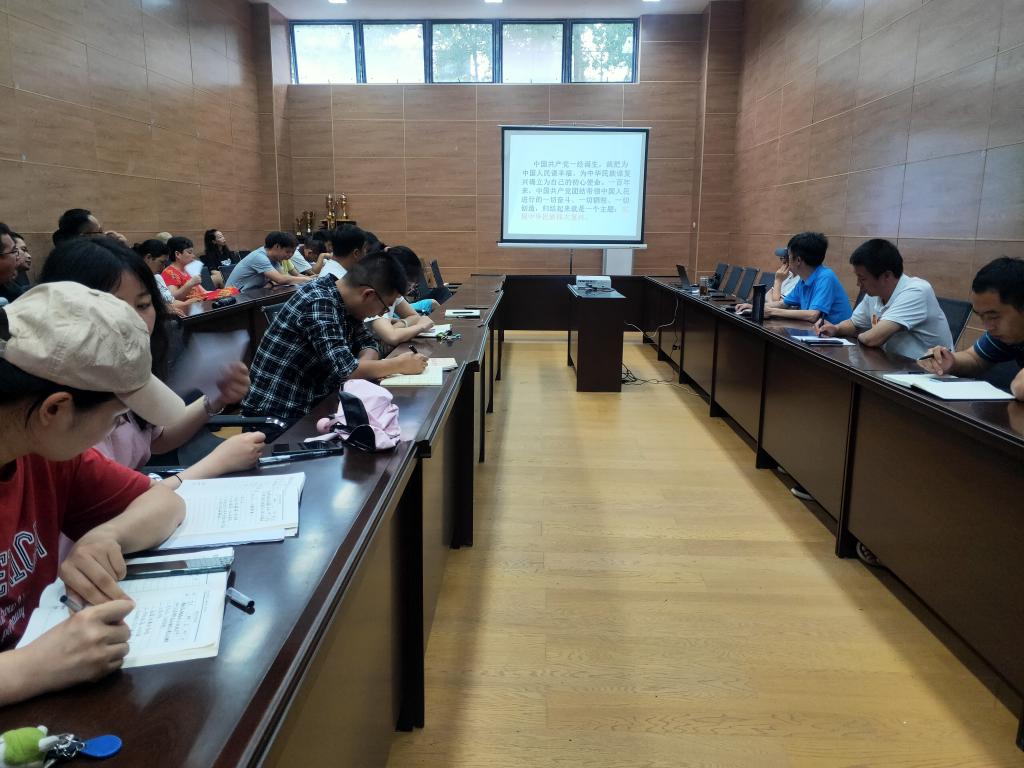 2021年7月9日上午,金年会jinnianhuicom全体教职工在体育馆副馆105会议室集中学习习近平总书记在庆祝中国共产党成立100周年大会上的讲话精神,学习活动由王兆忠主持。