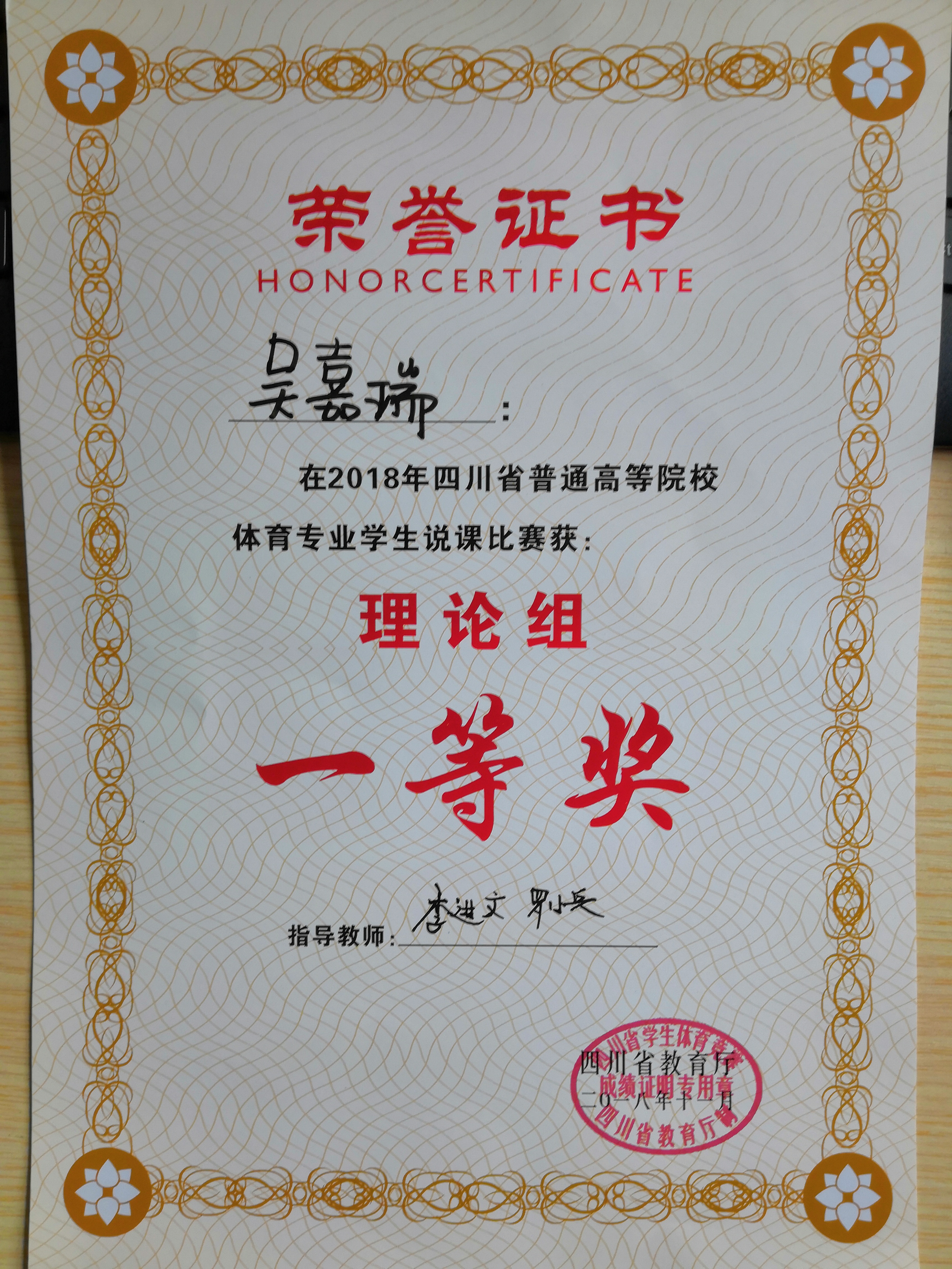 2018年11月15日至17日,由四川省教育厅主办的2018年四川省普通高等院校体育专业学生说课比赛在四川农业大学圆满落幕。经过两天的激烈竞争,金年会jinnianhuicom吴嘉瑞同学获得理论组一等奖,康利菊、曾子芮和陈念等三名同学获得三等奖,四川文理代表队荣获团体二等奖,成绩较以往有较大突破。陈碧述教授获得“优秀裁判员”称号。