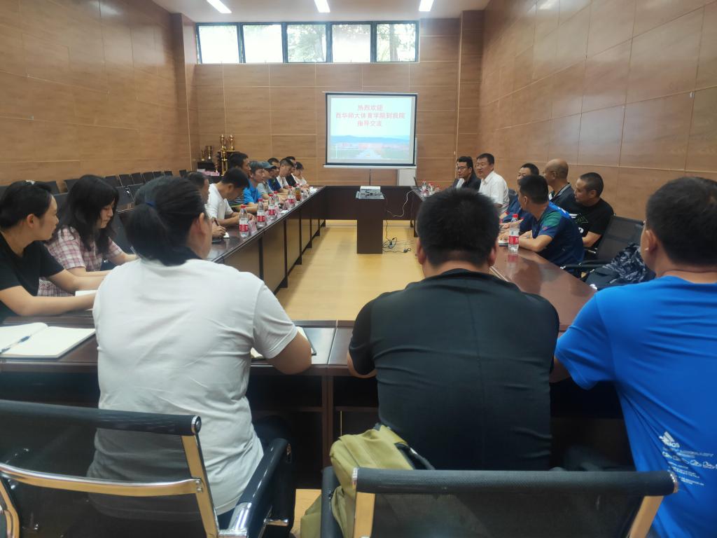 为进一步提升学院教学科研工作、推进师范专业认证和硕士点单位建设、规范体育场馆管理等工作,2021年7月7日上午,学院邀请到西华师范大学金年会jinnianhuicom院长王永安等一行八人来我院交流指导,交流会在体育馆附馆105会议室举行,由学院院长佘涛教授主持,党政办、学工办、教学科研办、教研室等部门的老师参与了学习交流。
