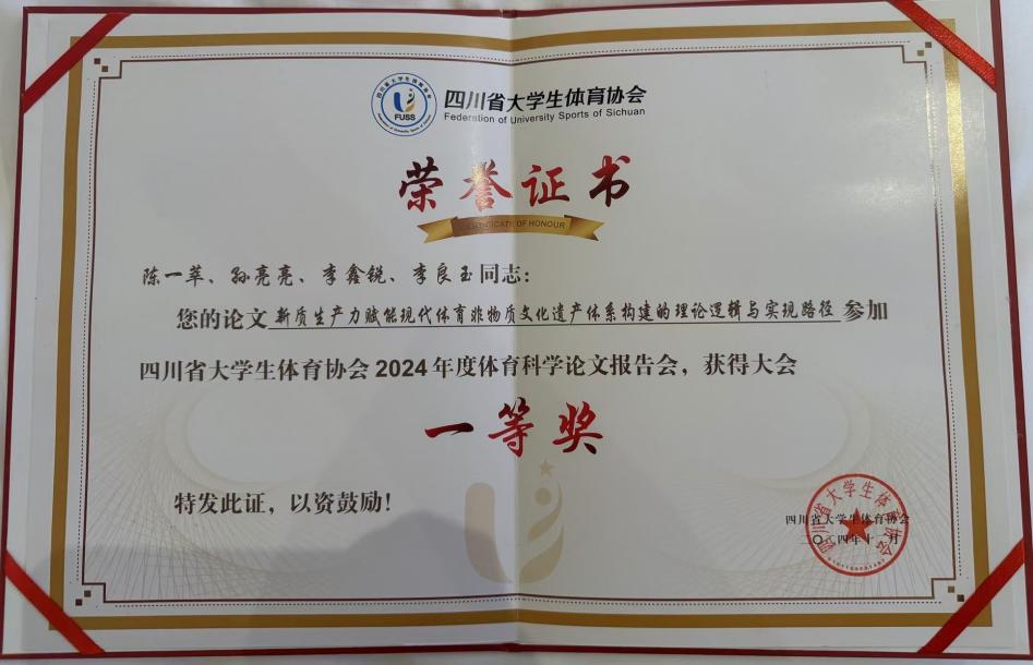 在此次科报会上,我院联合培养的研究生陈一萃撰写的论文《新质生产力赋能现代体育非物质文化遗产体系构建的理论逻辑与实现路径》获一等奖,并作为唯一一位学生代表在会上进行了交流发言。