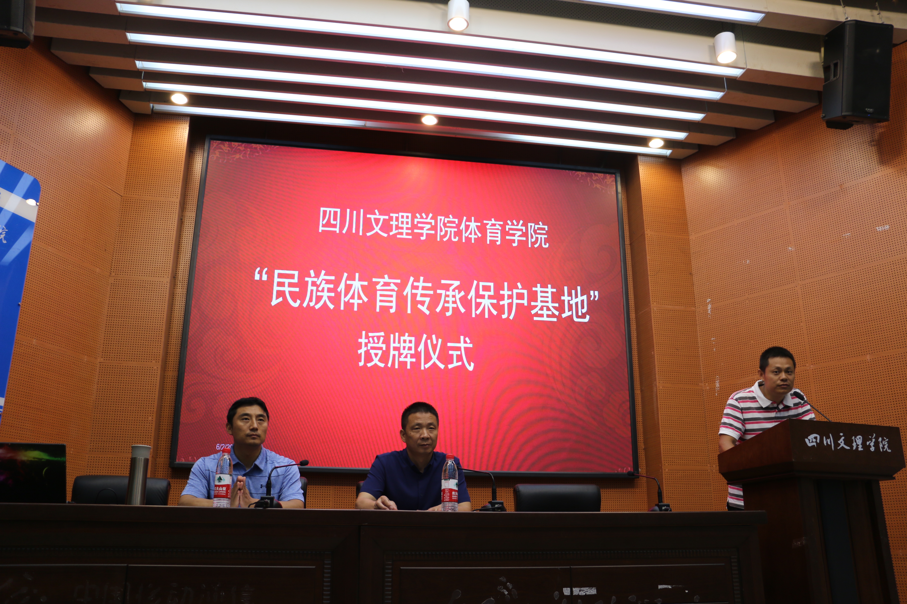讲座伊始,首先进行“民族体育传承保护基地”授牌仪式,由成都金年会jinnianhuicom陈振勇教授为我院院长佘涛教授授牌。其次,陈教授讲解了如何理解我们的民族传统体育文化,并分析了民族传统体育文化保护研究的领域等内容。最后,陈教授提出三点希望:一是希望同学们认真领会讲座内容;二是希望同学们积极的探索武术与民族传统体育的新模式和新方向;三是希望同学们努力成为一名合格的武术专业人才。