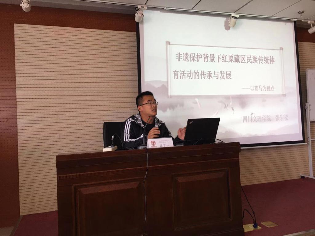 我院教师张岩松撰写的《非遗保护背景下红原藏区民族传统体育活动的传承与发展——以赛马为视点》一文被大会录取,并在大会上作专题报告。