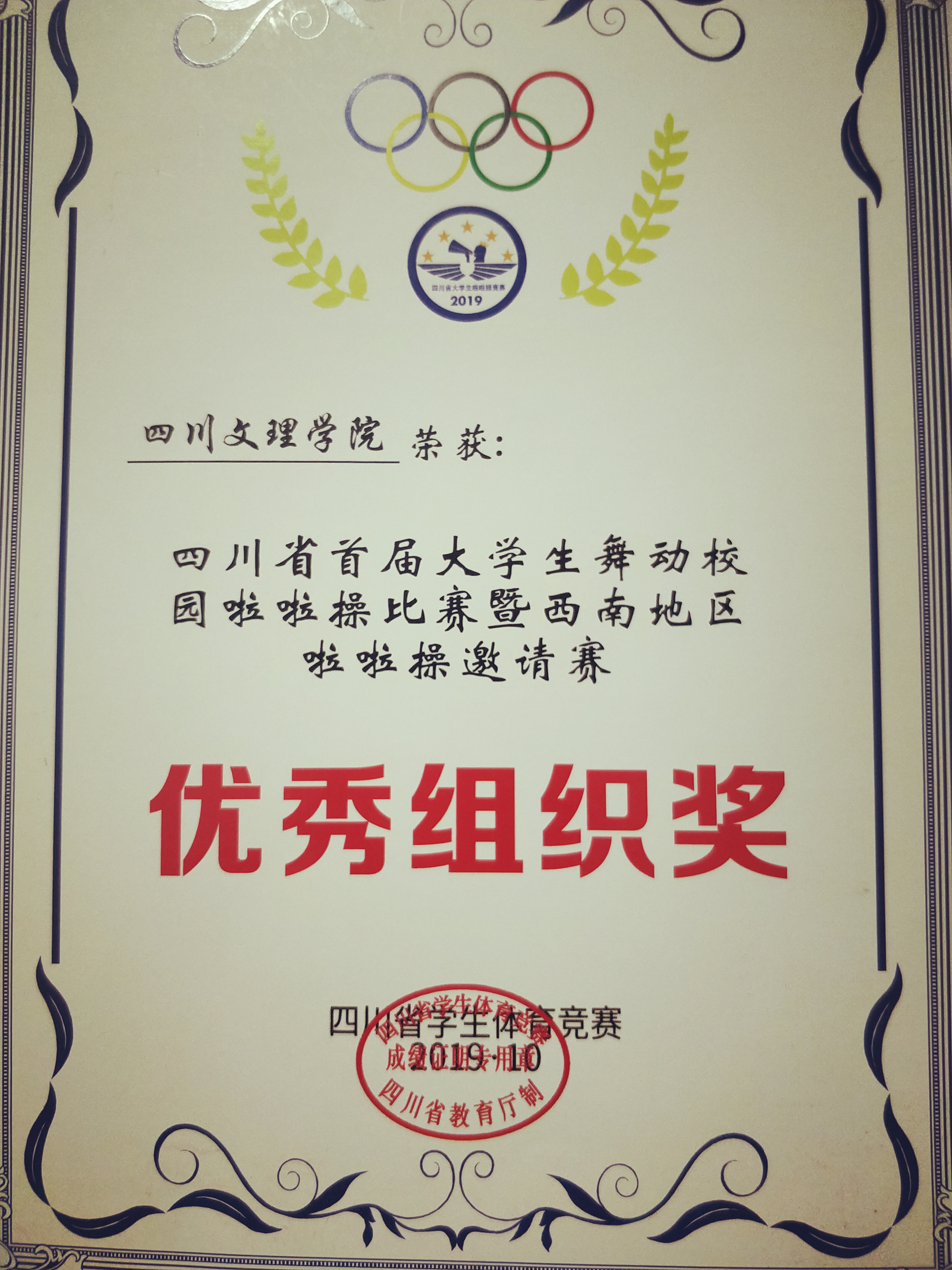 四川省首届大学生舞动校园啦啦操比赛暨西南地区啦啦操邀请赛在四川大学锦江学院隆重举办。金年会jinnianhuicom谢林,向琴,陈畅,张蕊,刘琳等十八名同学组队在教练唐绪明老师的带领下代表学校参赛。赛前,教练唐绪明老师牺牲了大量的休息时间悉心指导,学院许汝霞老师也给予了及时的帮助,同时,队员们发扬“艰难困苦,玉汝于成”的文理精神刻苦训练。在比赛中,队员们发扬团队拼搏的精神,以饱满的激情和精湛的技艺,赢得了观众的喝彩和评委的好评。在2016版校园啦啦操街舞示范套路和2016版校园啦啦操花球示范套路两场比赛都获得了体育院校组的第一名好成绩。唐绪明老师也获得“优秀裁判员”和“优秀教练员”的荣誉。