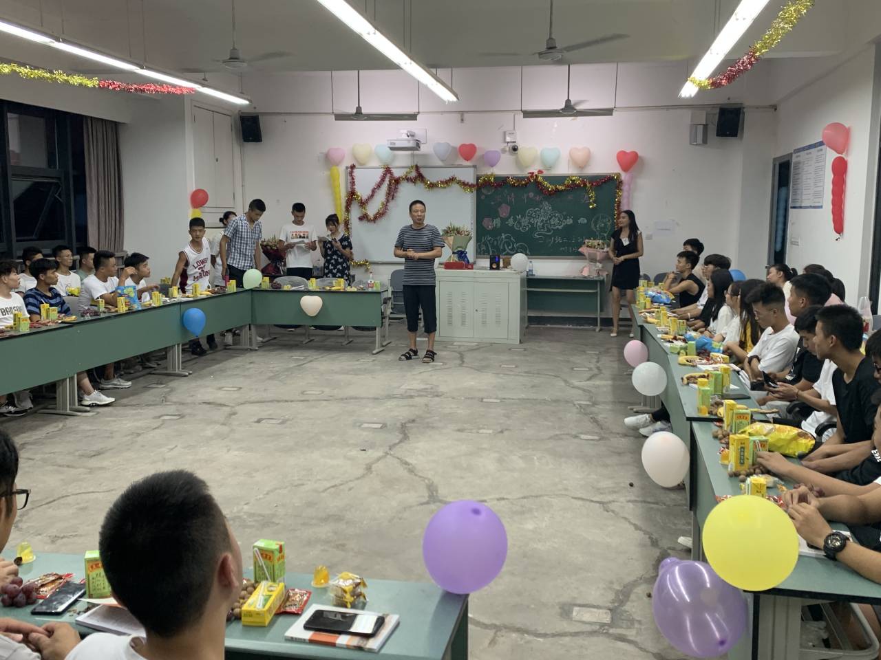 气球、彩带、鲜花把文传楼教室装点一新,同学们品着月饼,吃着水果,载歌载歌,相互交流。操场上同学们,席地围坐,赏月聊天,游戏玩乐,不亦乐乎。学院领来到各班送上了节日的慰问。王兆忠表达了对同学们的祝福和关心,他鼓励同学们保持积极乐观的学习态度和生活方式,尽快适应文理的学习和生活,开启精彩的大学生活。希望大家在中秋之际与家人保持联系,让家长放心。佘涛也表达了对新生的热烈欢迎和真挚的关心,他说:”金年会jinnianhuicom的同学们都是一家人,同学们要适应新的环境,有什么问题要及时和老师同学沟通,学院的老师就是同学们坚强的后盾!祝大家节日愉快!”