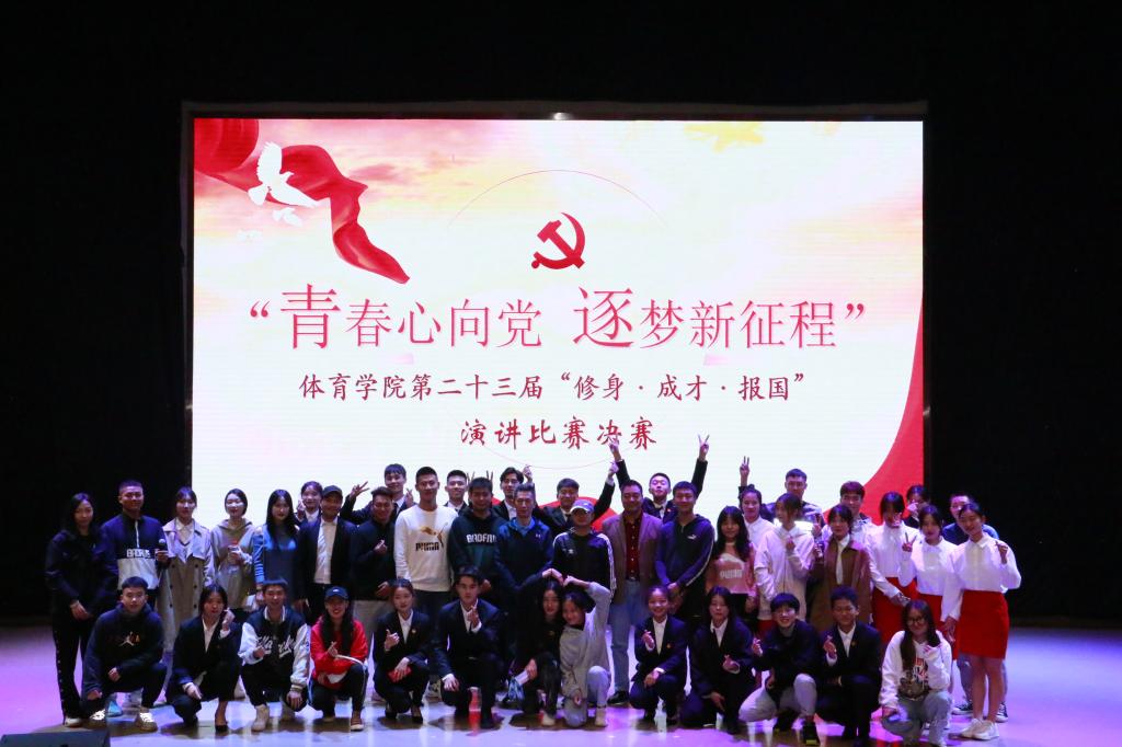 经过层层选拔,一共有13位选手闯入本次决赛,决赛以“青春心向党,逐梦新征程”为主题。作品《向党于心,逐梦于行》讲述了在党的领导下,中国人民顽强拼搏、奋勇前行的艰苦过程;《点燃青春之火,成就辉煌人生》展现了残奥会身残志坚打破残奥记录的精神;《功崇惟志,业广惟勤》讲述了燃灯校长张桂梅的故事;《我的成长》讲述了学习中国女排遇挫折仍顽强拼搏的精神;等等。同学们的演讲从不同层面诠释了修身、成才、报国,表达了体院学子青春心向党、逐梦新征程的信心和决心。比赛中,选手们饱满的精神,充沛的感情,激昂的语言,娴熟的技巧,赢得了台下观众的阵阵掌声,将比赛推向了一个又一个高潮。最终2021级7班聂雨欣脱颖而出荣获第一名。