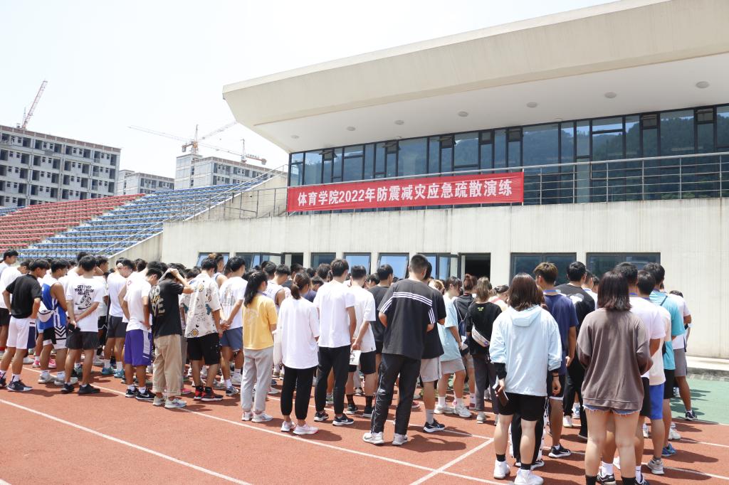 本次演练模拟了在上课状态下地震突发,学生们紧急撤离的场景。随着防震警报声准时响起,体育馆学生迅速做出反应,有序撤离体育馆,到达田径场指定集合地点,整个过程约1分钟30秒。