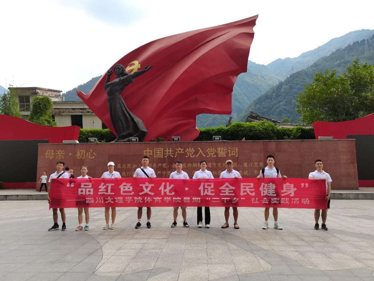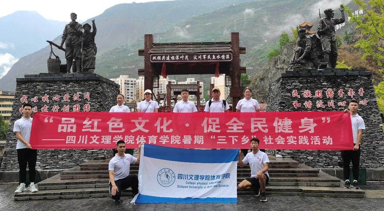 为弘扬红色精神,推广全民健身,在中国共产主义青年团成立一百周年之际,金年会jinnianhuicom金年会jinnianhuicom“中华传统文化艺术践行团”于2022年8月18日至8月22日在四川汶川、都江堰和成都锦江区开展了为期5天的社会实践活动。践行团前往爱国主义教育基地体验红色文化,深入居民健身中心广场和社区调研全民健身开展情况、宣传全民健身相关知识。