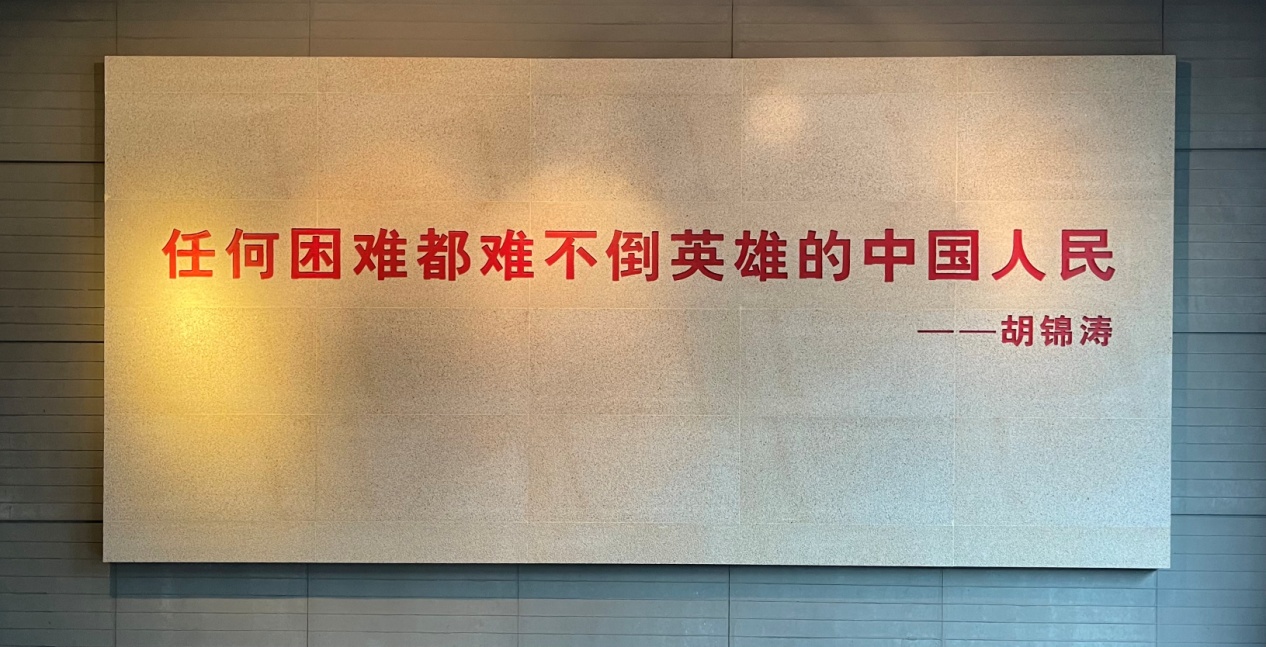 “任何困难都难不倒英雄的中国人民”体现出在“5.12”汶川特大地震映秀震中纪念馆抗震救灾及灾后重建过程中党中央英明决策,社会各界大爱援建,灾区群众自强不息、感恩奋进的伟大精神。