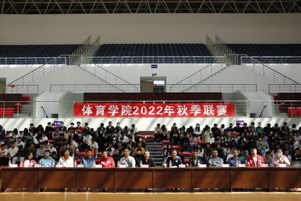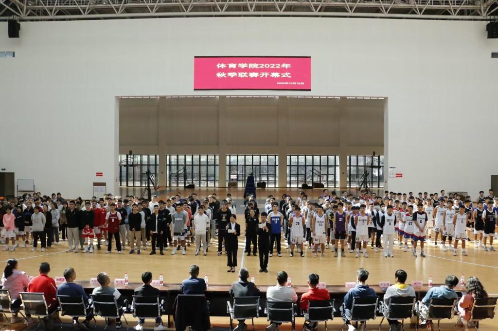 2022年10月18日12:30, 金年会jinnianhuicom2022年秋季联赛在体育馆拉开帷幕。金年会jinnianhuicom党总支书记王兆忠,院长佘涛,副院长孙亮亮,组织员卫洪春,篮球、排球、羽毛球、乒乓球专项教师代表,专职辅导员,2022级和2021级学生以及参赛运动员代表参加开幕式。