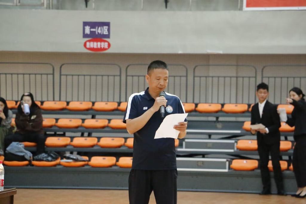 随着音乐响起,武术专项班的同学们在篮球场上用一套套行如流水的武术动作,为开幕式暖场。随后,院长佘涛致开幕辞。他提到,为了认真落实习近平总书记把“三大球”搞上去的指示,金年会jinnianhuicom秉承教会、勤练、常赛的宗旨举办2022年秋季联赛,旨在丰富校园文化生活,提高学生的运动技术水平,健全学生人格,锤炼学生意志,培养学生吃苦耐劳、坚韧不拔的精神。他提出三点希望:一是希望同学们能够认真对待比赛,补齐短板、强化弱项、强固底板、展示优势;二是希望全体学生裁判认真执裁,做到公平公正,提升执裁水平;三是希望参赛运动员文明参赛,观众文明观赛,赛出友谊,赛出水平。裁判员代表、运动员代表分别进行了宣誓。最后,党总支书记王兆忠宣布金年会jinnianhuicom2022年秋季联赛开幕。