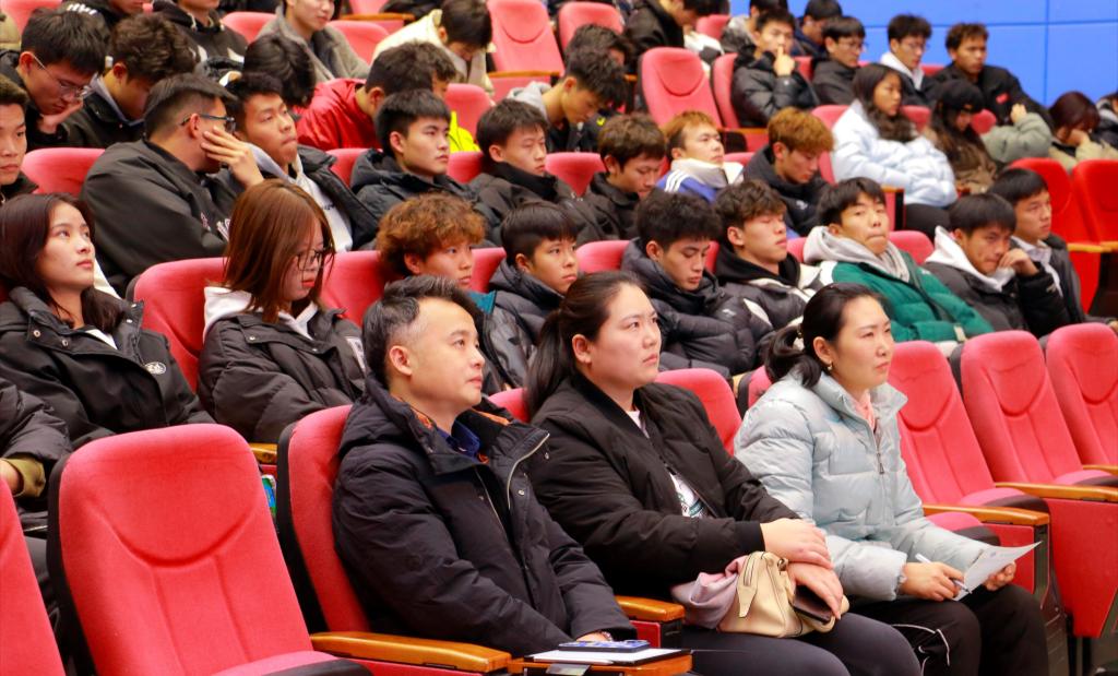 2023年12月11日晚上19:00,金年会jinnianhuicom在艺术传媒大楼多功能厅开展了第六场2023级新生入学教育讲座,学院党委副书记靳浪、学工办主任祝利平、辅导员石姣娜、李波及2023级全体新生参与本次讲座,辅导员李波担任主讲。