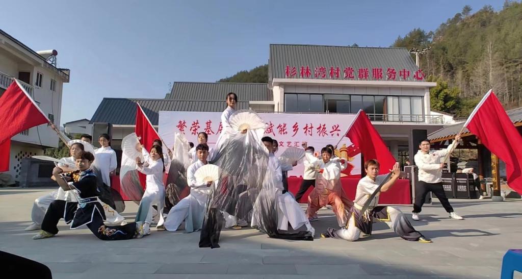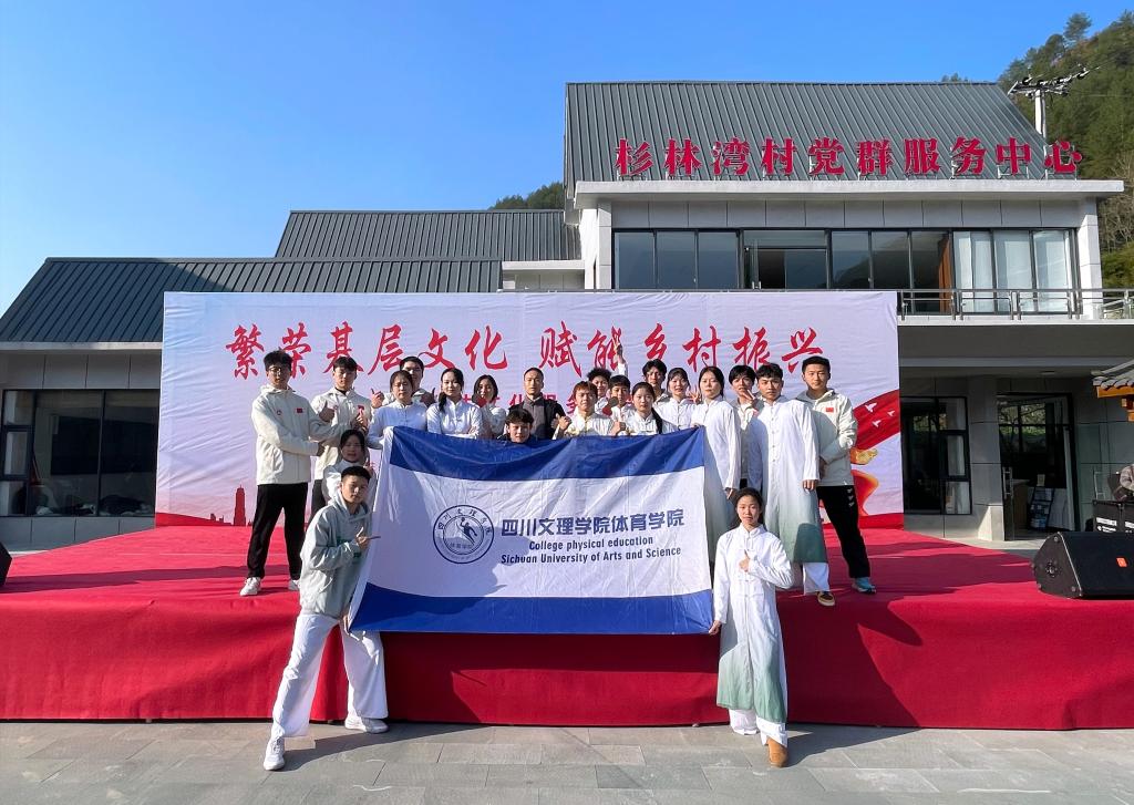学院高度重视,就万源石塘镇杉林湾村托底帮扶志愿活动顺利推进举行了专题会议,确定了参演方案、节目及负责人,并提出了“确保安全,确保质量”的要求。武术教研小组随即行动起来,选拔队员,组织排练。1月11日,金年会jinnianhuicom武术队正式前往万源市石塘镇杉林湾村开展了“繁荣基层文化,赋能乡村振兴”的传统体育文化展演。本次活动由李波老师带队,由杨慧、蒲黔蜀等20名学生参与。