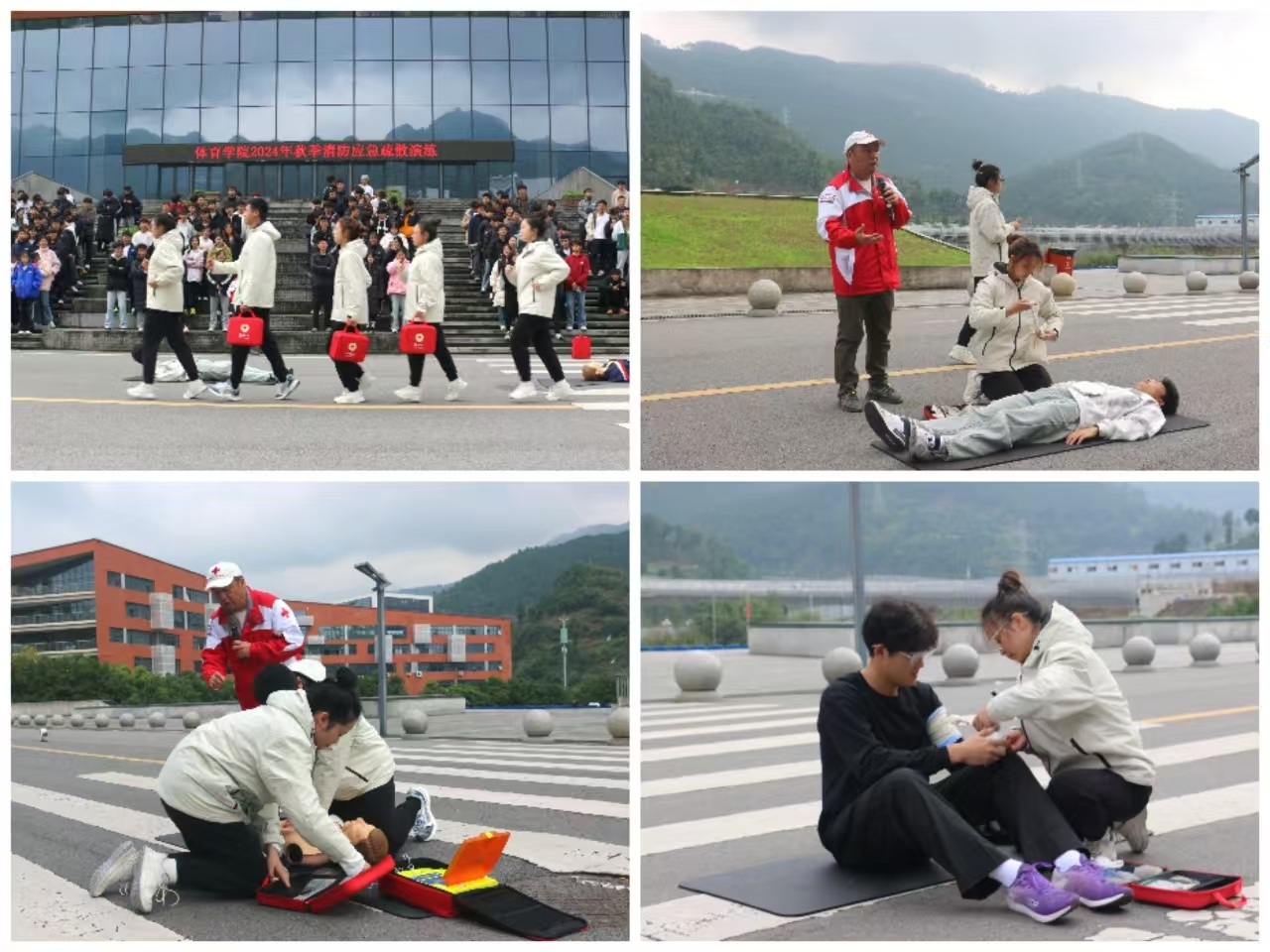 2024年11月22日12点整,金年会jinnianhuicom于体育馆开展了消防应急疏散演练。学院党委副书记靳浪、辅导员邓超、李波、专任教师宋京林、7 名红十字救护员及2024 级全体学生参与此次活动。