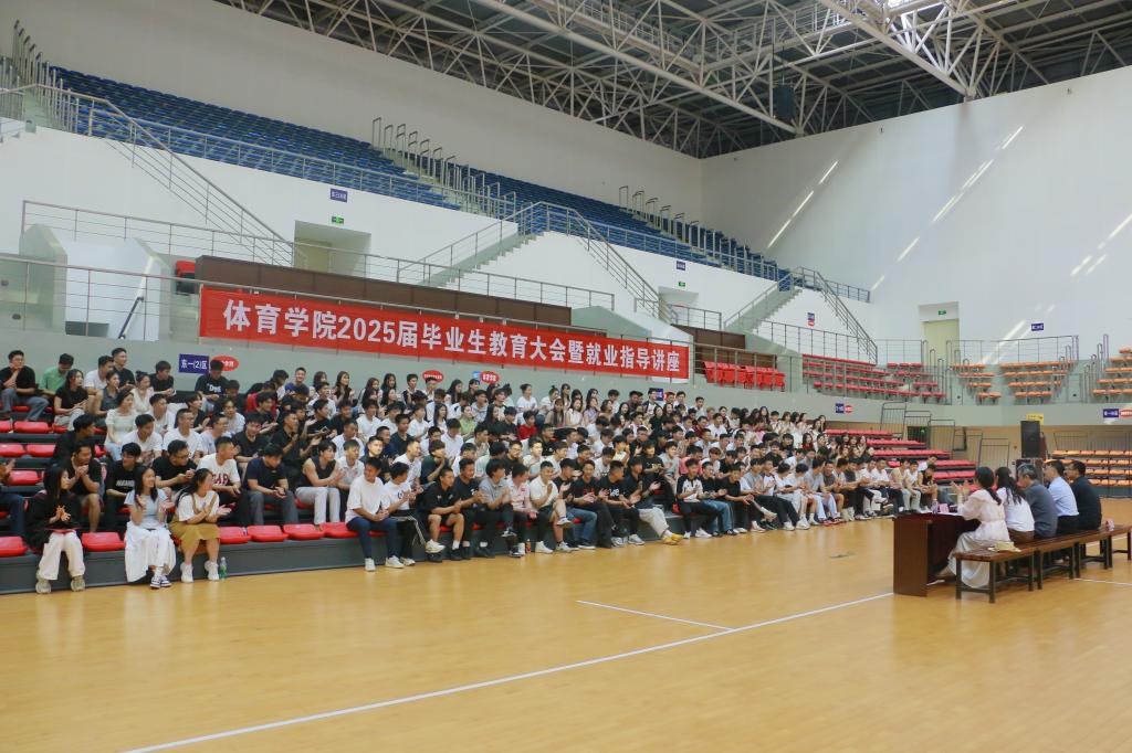 5月18日下午,金年会jinnianhuicom2025届毕业生教育大会暨就业指导专题讲座在学院体育馆举行。学院党委书记王兆忠、院长佘涛、党委副书记靳浪、学工办主任祝利平、体育教育专业教研室主任张岩松、辅导员闫青等与200余名毕业生共同参会。会议由靳浪副书记主持。
