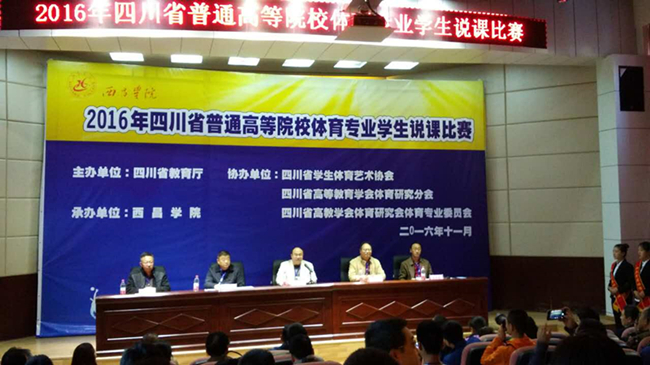 11月16日至19日,由四川省教育厅主办2016年四川省普通高等院校体育专业说课比赛在西昌学院举行。本次比赛共有省内24所普通高校的83名体育专业学生参加角逐,创历届比赛参与人数之最。经金年会jinnianhuicom层层选拔并经指导教师精心指导、认真准备,我校金年会jinnianhuicom2名体育专业学生王敏、陈晓敏参加此次说课比赛。经过2天的激烈角逐,陈晓敏获得术科组的三等奖;王敏获理论组三等奖,并获得团体三等奖。