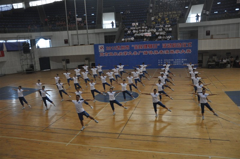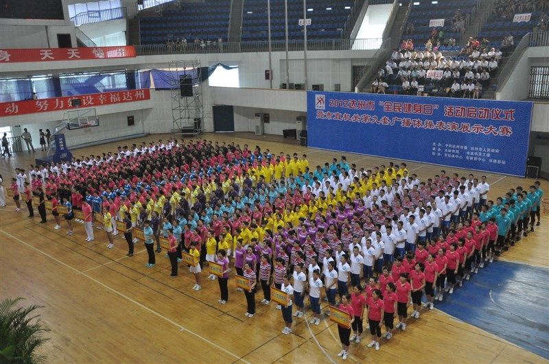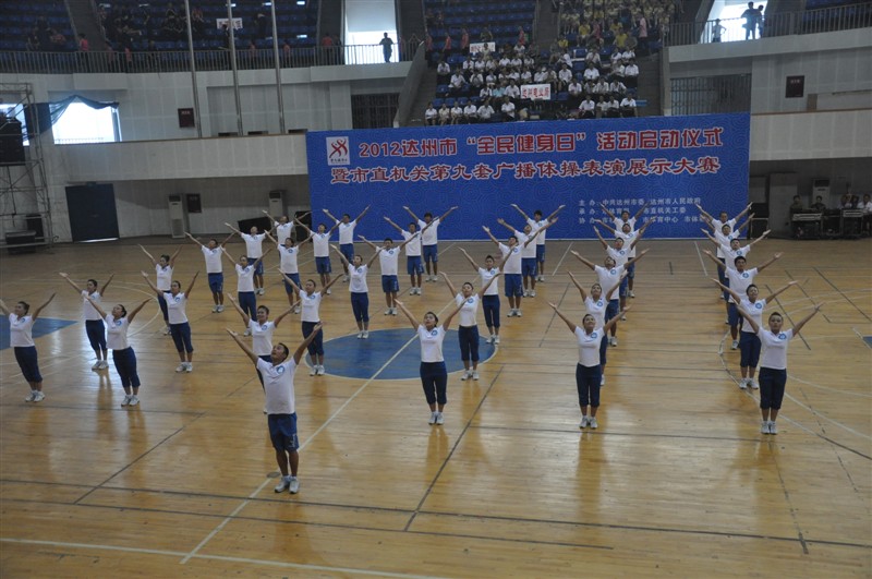 为了更好的营造全民健身活动氛围,提高广大市民的健身理念,努力建设幸福达州,8月8日上午,2012达州市“全民健身日”活动启动仪式暨市机关第九套广播体操表演展示大赛在市体育馆隆重举行,本次比赛由中共达州市委,达州市人民政府主办。金年会jinnianhuicom党委书记李万斌教授受邀出席了活动的启动仪式并观看了比赛。体育系董立主任,系党总支佘涛副书记(主持全面工作),系党总支张皓副书记,系辅导员及学院的教师代表一行观看了全程比赛。