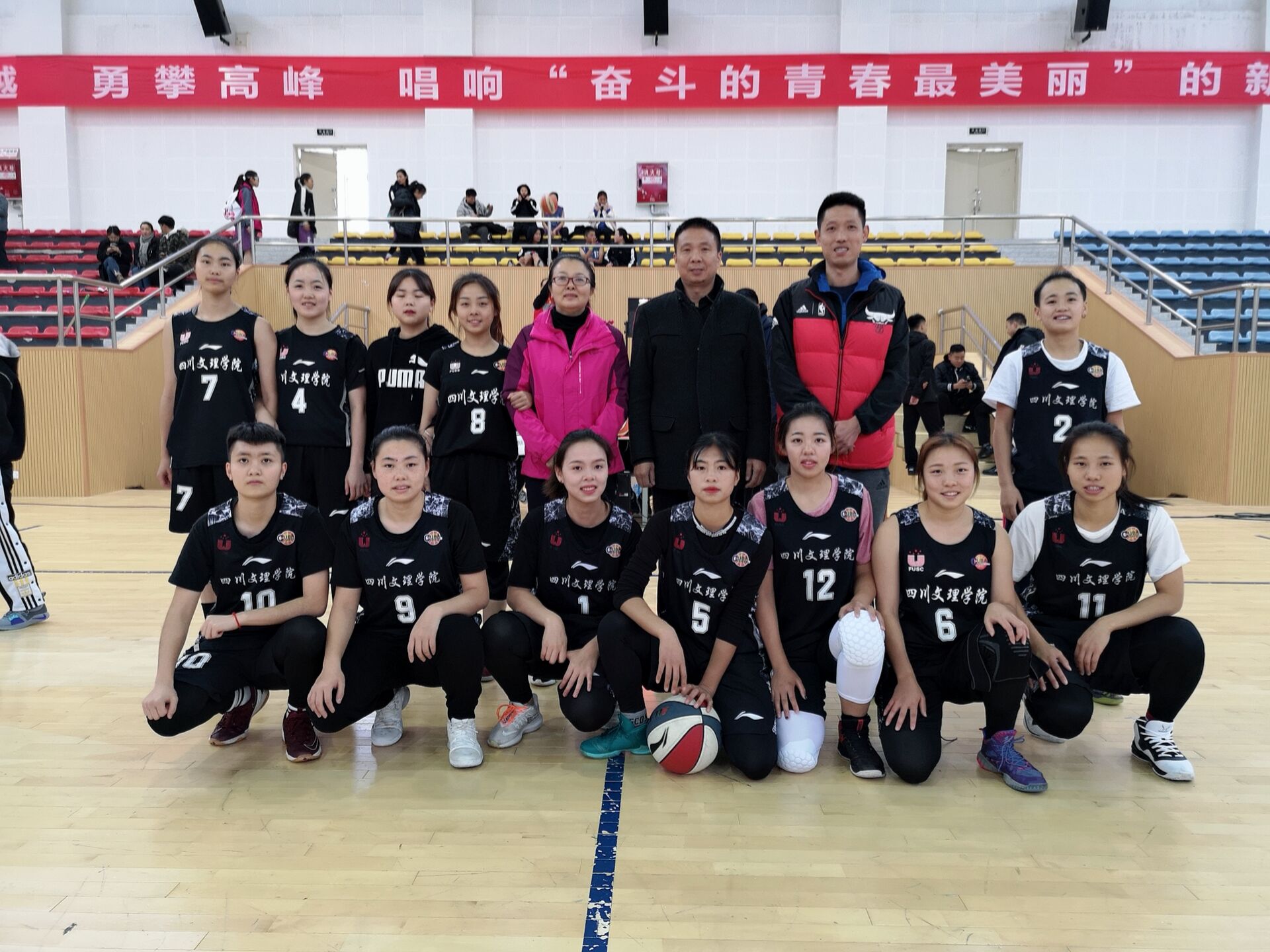 第21届CUBA中国大学生篮球一级联赛(四川赛区)于2018年11月14日至11月18日在成都文理学院(金堂校区)举行。本次比赛由中国大学生体育协会和四川省教育厅主办。我院陈雨衡、何美琼、李纪霜、徐雪、邓小芳、丁李捷、李晓玲、周悦、李艳丽、王梦霞 、王婕妤、邓梦瑶十二名队员在领队覃雪芹老师及主教练邓伟老师的带领下参加了比赛。