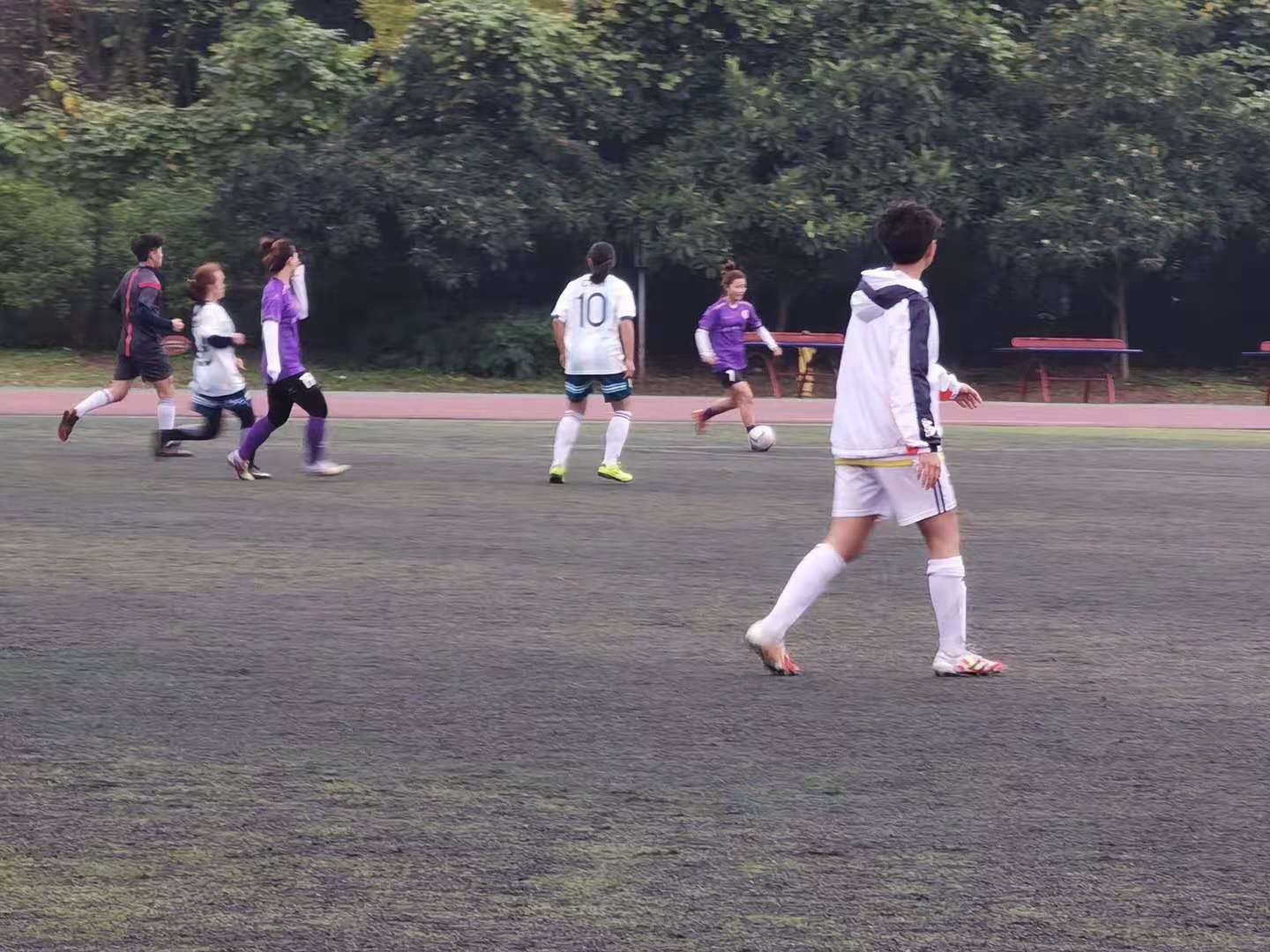 在交流中,热烈欢迎西华师大女足的到来,两院同学以及老师积极参与。27日下午,本着“友谊第一,比赛第二”的理念,两院女足队员在足球场进行了训练比赛,在细雨下女足队员依然展现了各自的风采,相互交流的过程中丰富了自己的眼界,提高自己的能力。