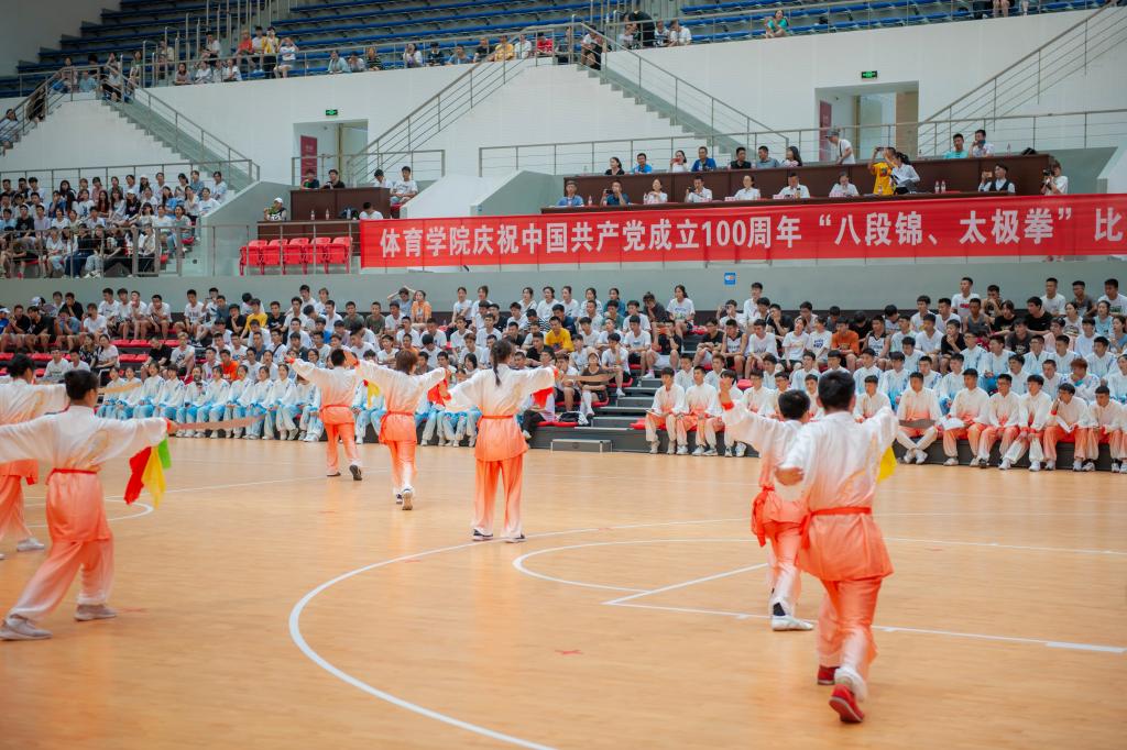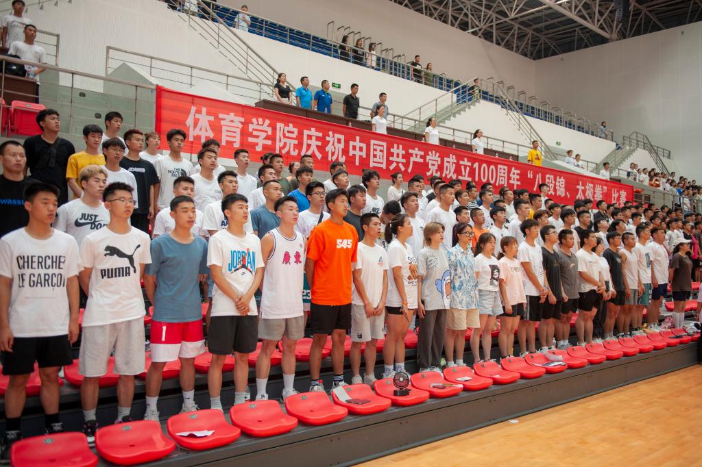 为庆祝中国共产党成立100周年,全面贯彻落实《关于全面加强和改进新时代学校体育工作意见》,积极推动“阳光体育”活动开展,弘扬中华优秀传统体育文化,营造蓬勃向上的校园文化和“以体启智、以体育人”的浓厚氛围,金年会jinnianhuicom于2021年6月2日在体育馆成功举办了庆祝中国共产党成立100周年“八段锦、太极拳”比赛。